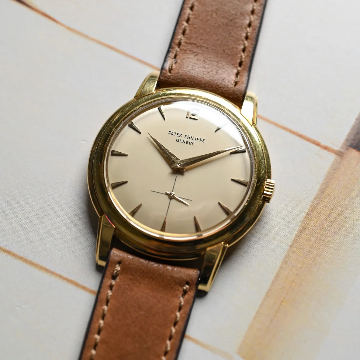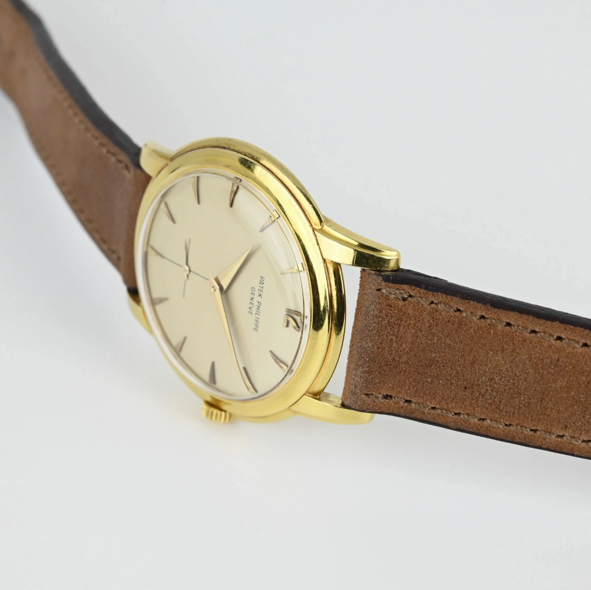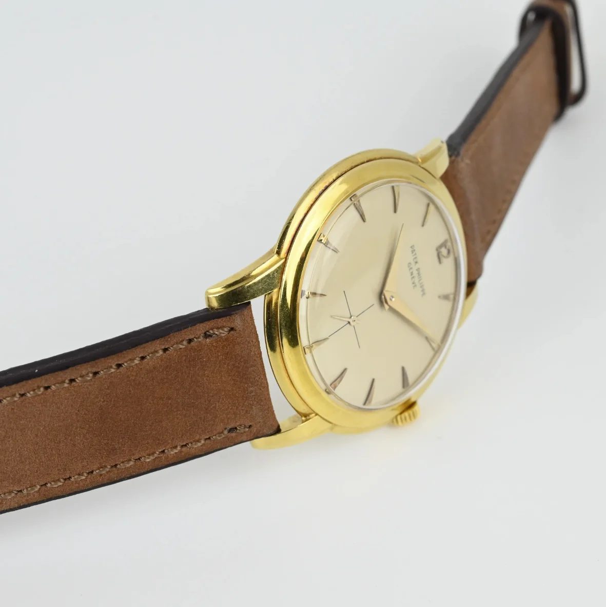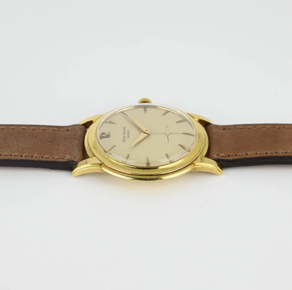 This yellow gold Patek Philippe Calatrava is in very good condition considering its age. The case and bezel are in very good condition with a few light scratches and signs of wear. The dial is in good condition, as are the hands.