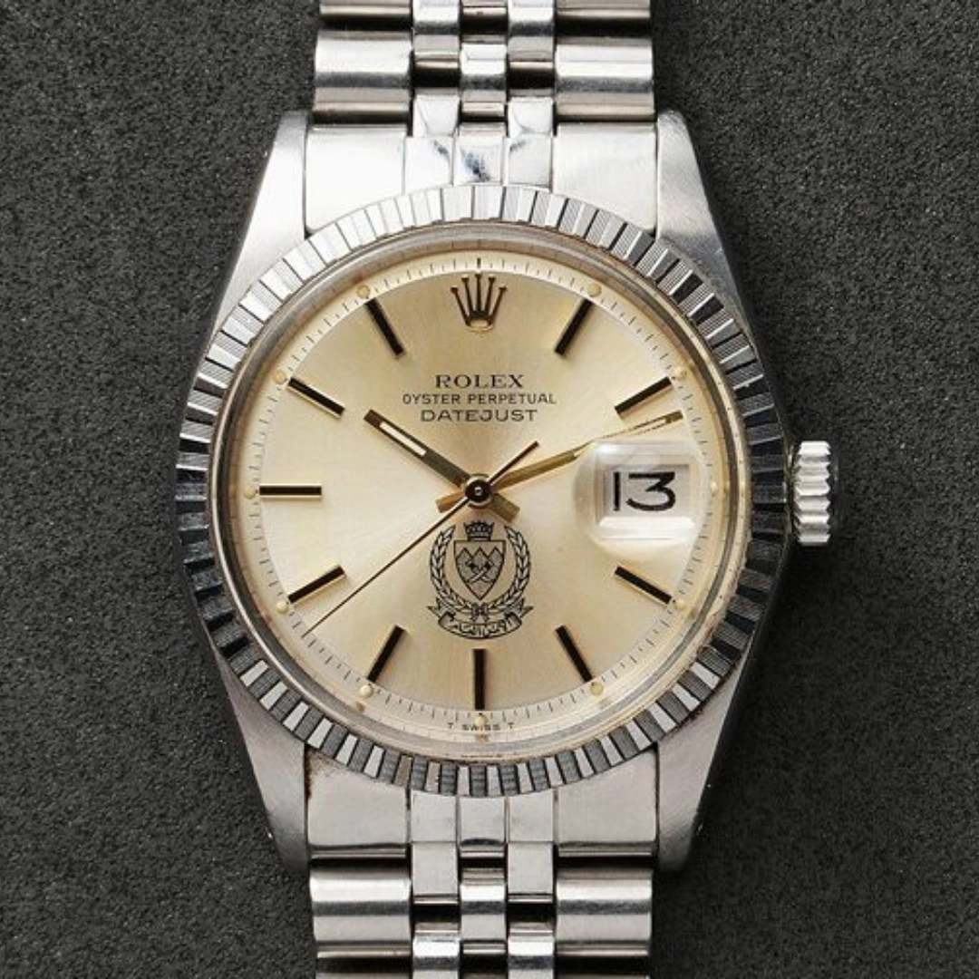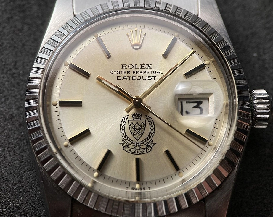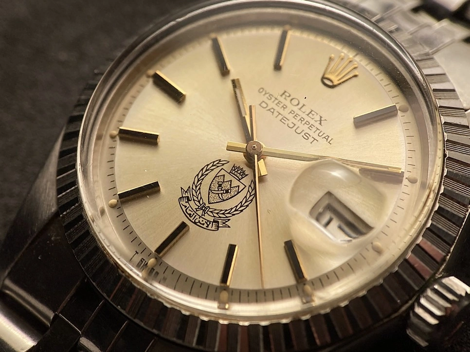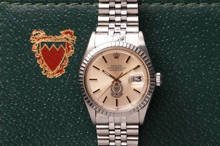 Here is a rare opportunity to acquire a Rolex Vintage Datejust with original Bahrain dial & box, ref. 1603 from 1975. The watch was gifted by a Bahraini national to a Swiss friend when both attended the same college.