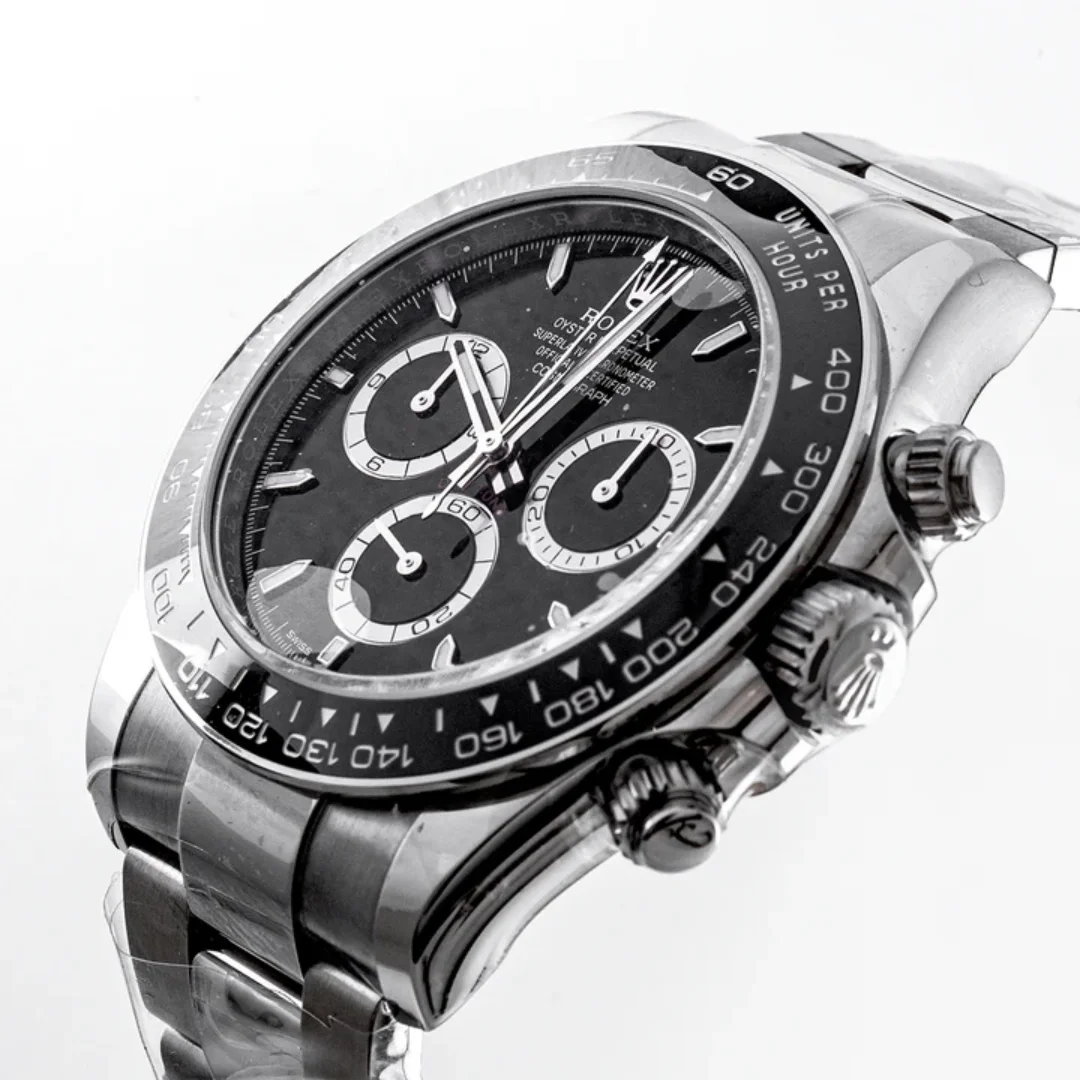 The Rolex Cosmograph Daytona 126500LN-0002 was introduced in 2023 and is the brother or nicknamed Panda Daytona. This Daytona has a stainless steel case crowned by a black Cerachrom bezel with engraved tachymeter scale. This watch is powered by the updated caliber 4131. The dial is Black. This Daytona is fitted with an Oyster bracelet
