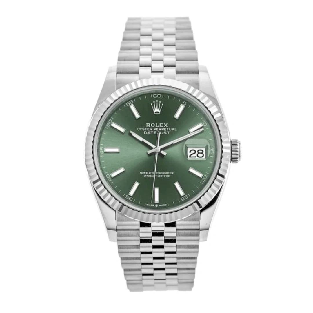 Rolex Datejust 36 Ref. 126234-0051 features a subtly resigned case paired with a new movement - caliber 3235. Per Rolex tradition, it was first offered in either steel & yellow gold or steel & 'Everose' rose gold, with the stainless steel variations such as the present watch following in 2019. Reference 126234-0051, powered by caliber 3235, has a stainless steel case of 36.00mm. It is crowned by a white gold, fluted bezel. This particular version has a Green dial, although many different options exist.