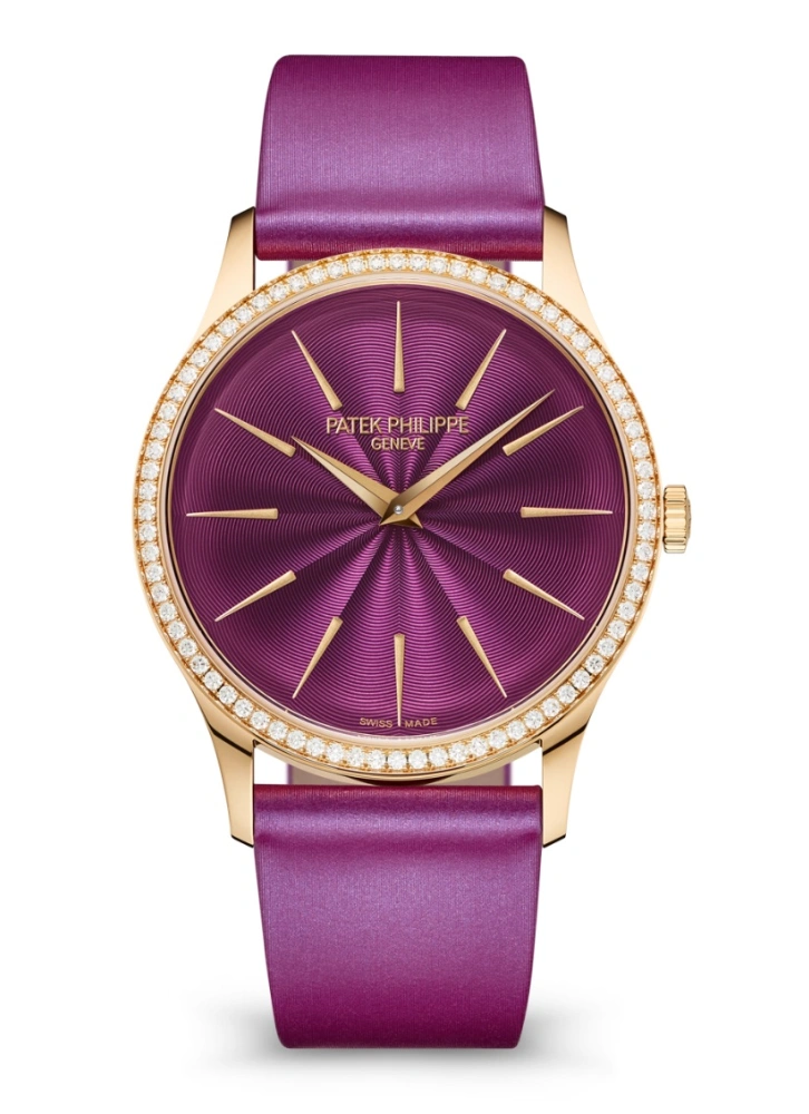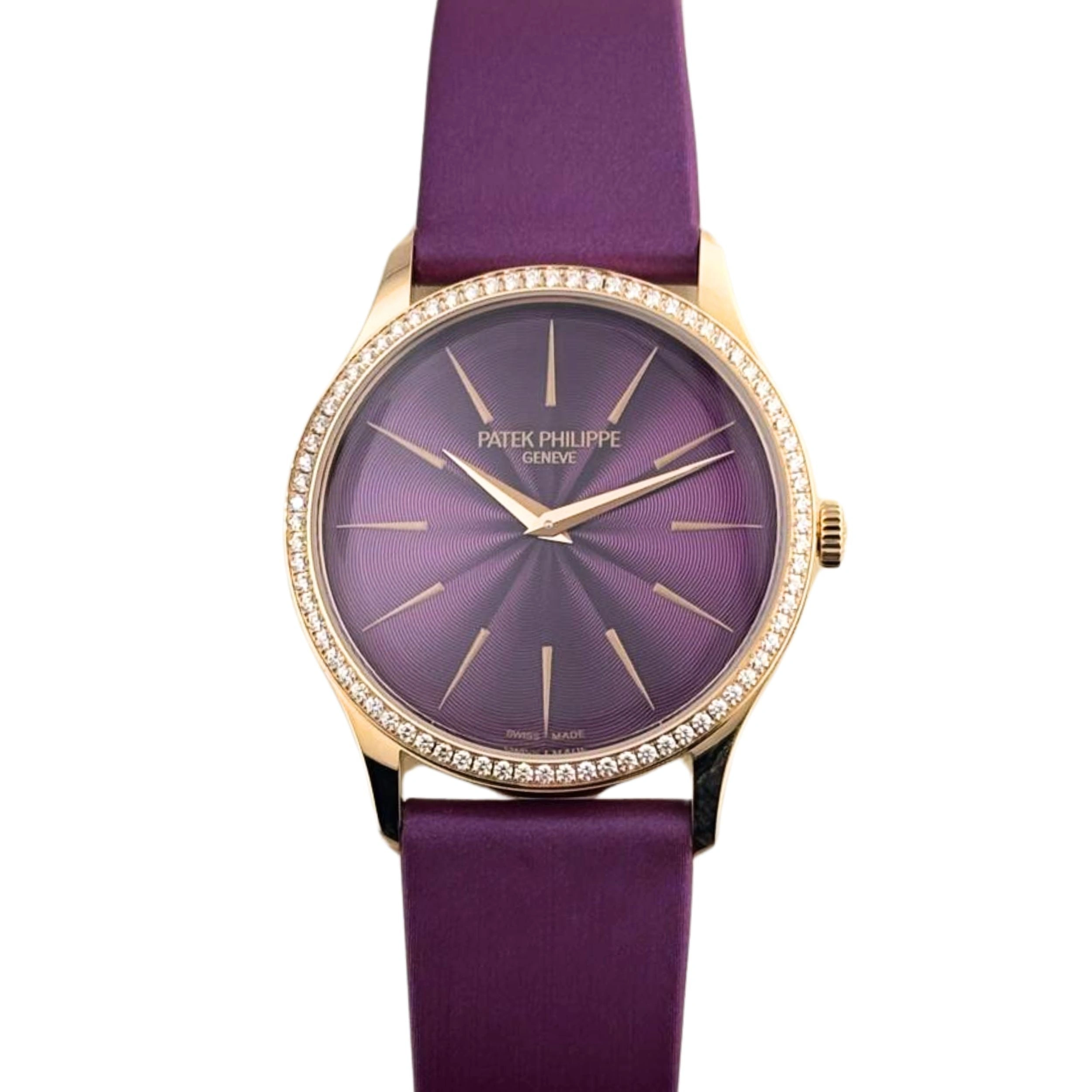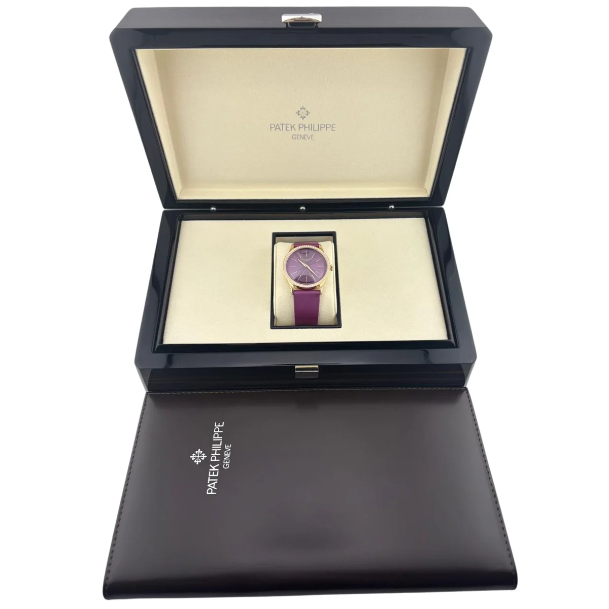 The Patek Philippe Calatrava Ref. 4997/200R-001 features a slightly larger case than the earlier 4897 (+2mm), and a self-winding movement replacing a handwound one. Reference 4997/200R-001 has a Rose Gold case and a Purple dial. This was added to the collection in .
