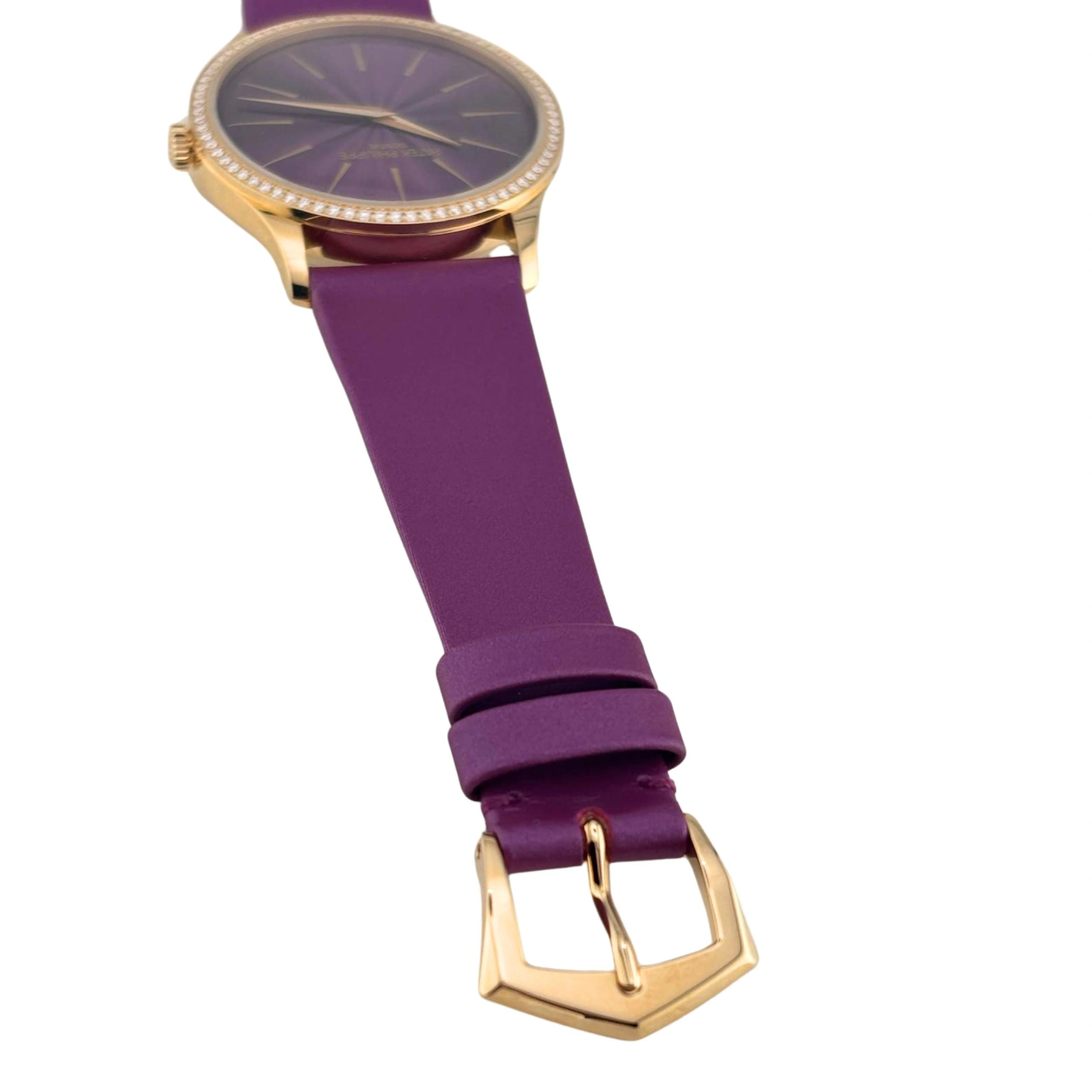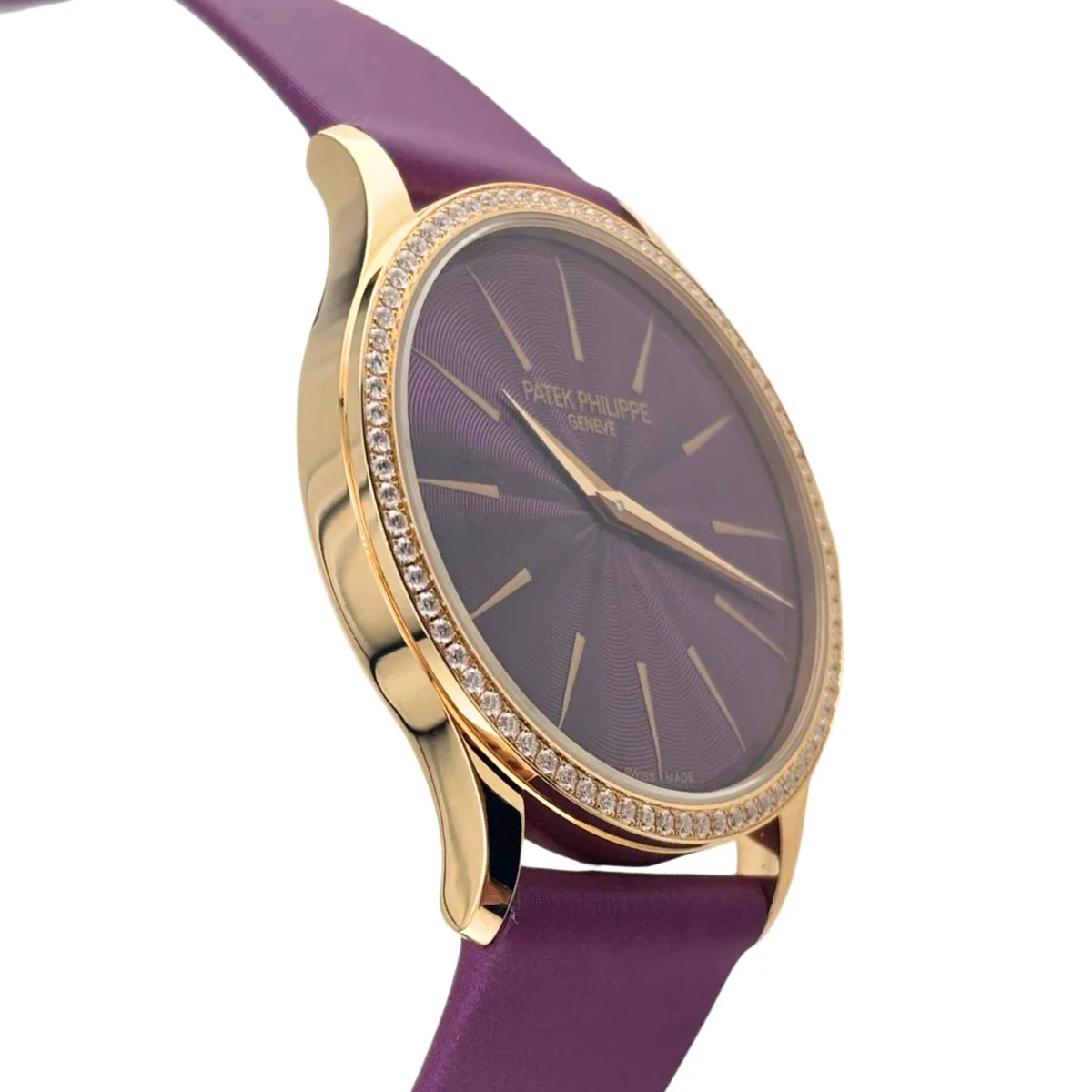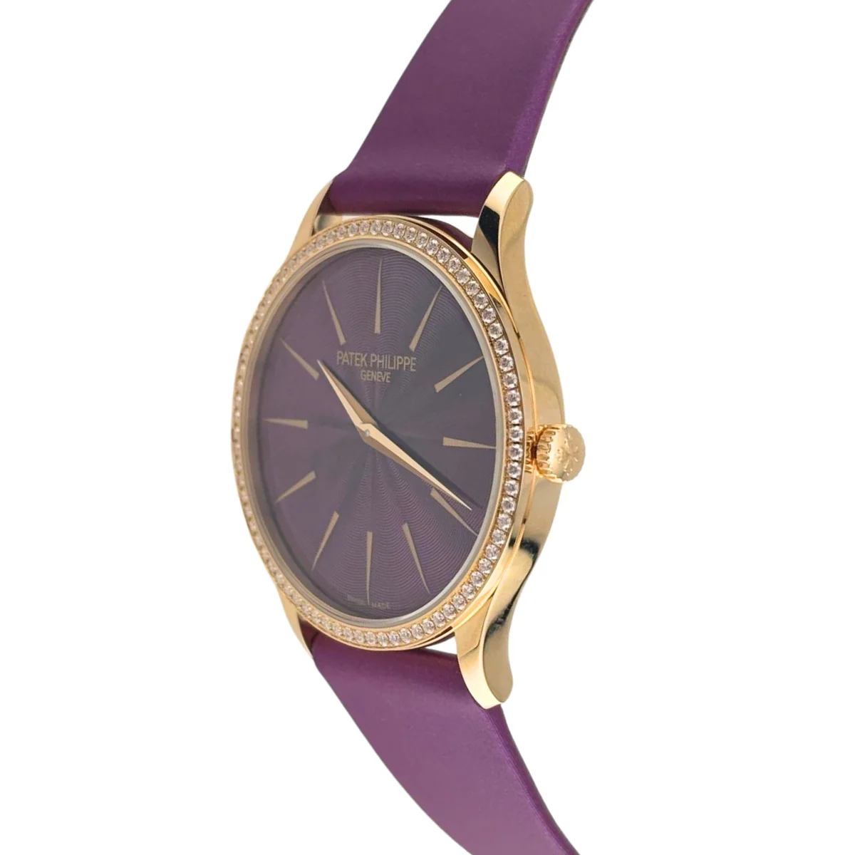 The Patek Philippe Calatrava Ref. 4997/200R-001 features a slightly larger case than the earlier 4897 (+2mm), and a self-winding movement replacing a handwound one. Reference 4997/200R-001 has a Rose Gold case and a Purple dial. This was added to the collection in .