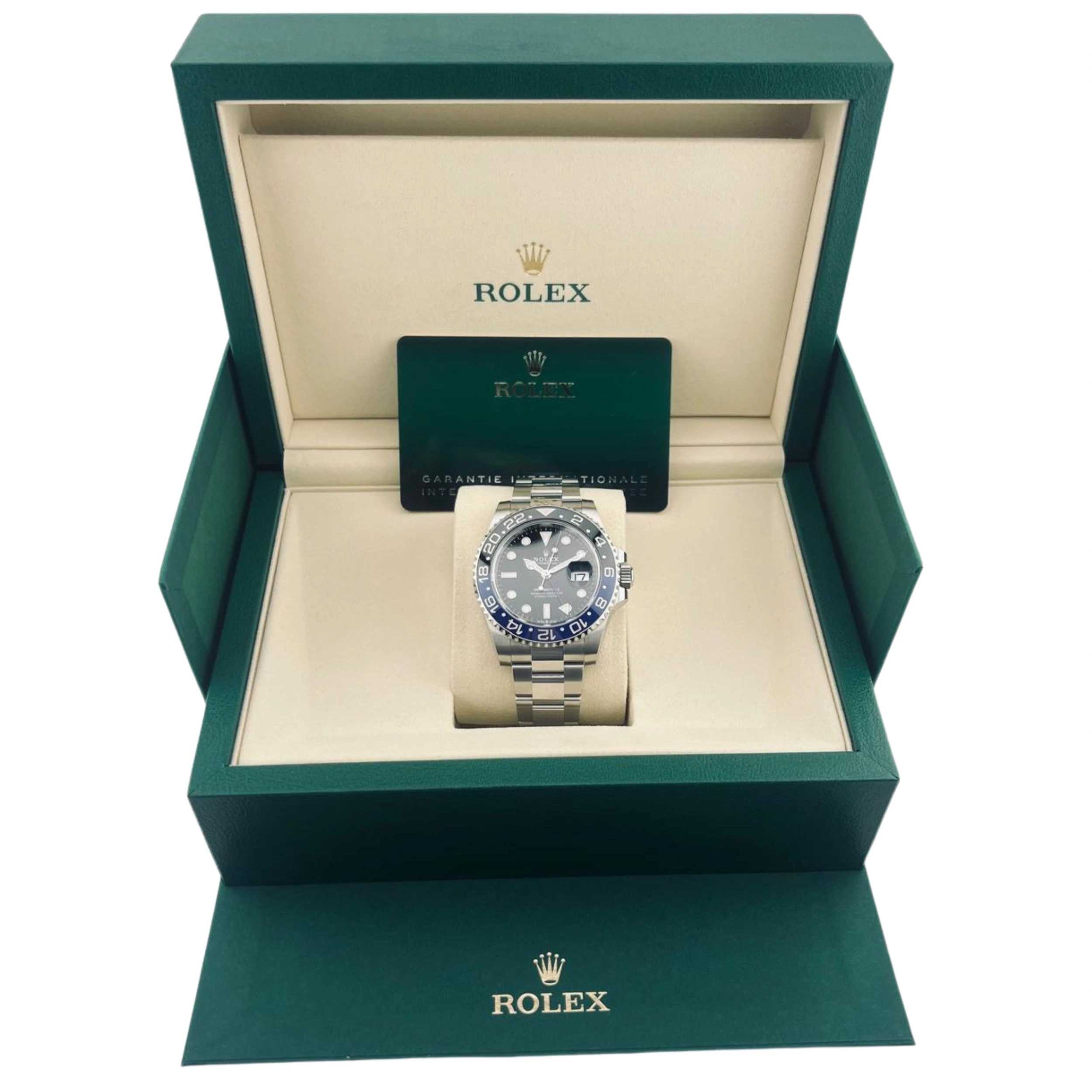 The Rolex GMT-Master 126710 was introduced at BaselWorld 2018 as the 'Pepsi', while the version shown here was added to the collection in 2019. Reference 126710BLNR-0003 features the 'Batman' bezel in black and blue. It is fitted with a Oyster-type bracelet. This configuration was added to the collection in 2021.