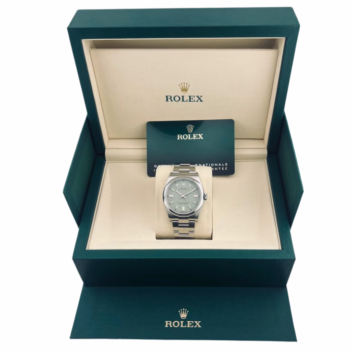 The Rolex Oyster Perpetual 36 reference 126000-0005 was introduced in 2020. This watch has a Stainless Steel case of 36.00mm, which holds the self-winding caliber 3230. The dial is Green.