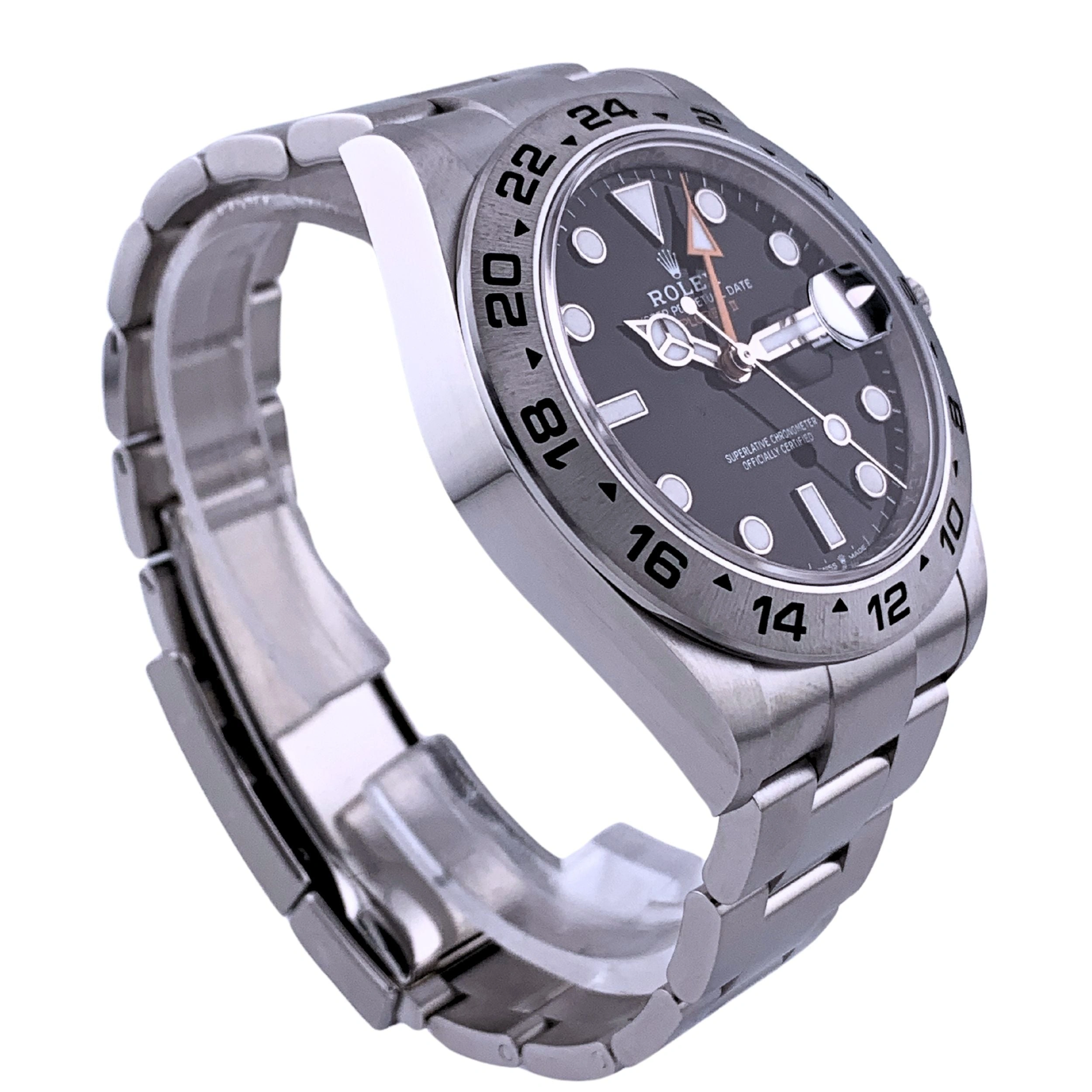 Introduced in 2021, the Rolex Explorer II reference 226570-0002 has a Stainless Steel case of 42.00mm, housing the self-winding caliber 3285. The dial is Black.