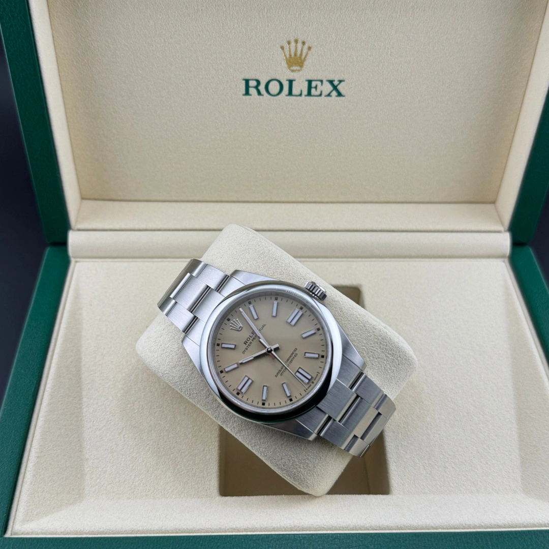 The Rolex Oyster Perpetual 41 reference 134300-0007 was introduced in 2025. This watch has a Stainless Steel case of 41 mm, which holds the self-winding caliber 3230. It is equipped with a Beige dial.