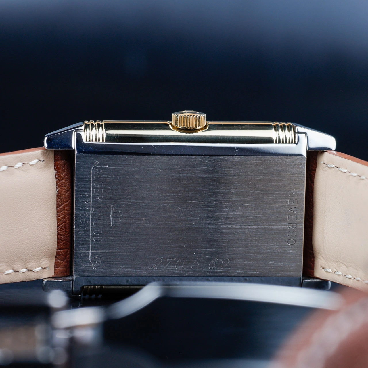 Jaeger-LeCoultre Reverso Ref. Q2705420 or simply 2705420 with a stainless steel and yellow gold case size 26 mm x 42 mm.