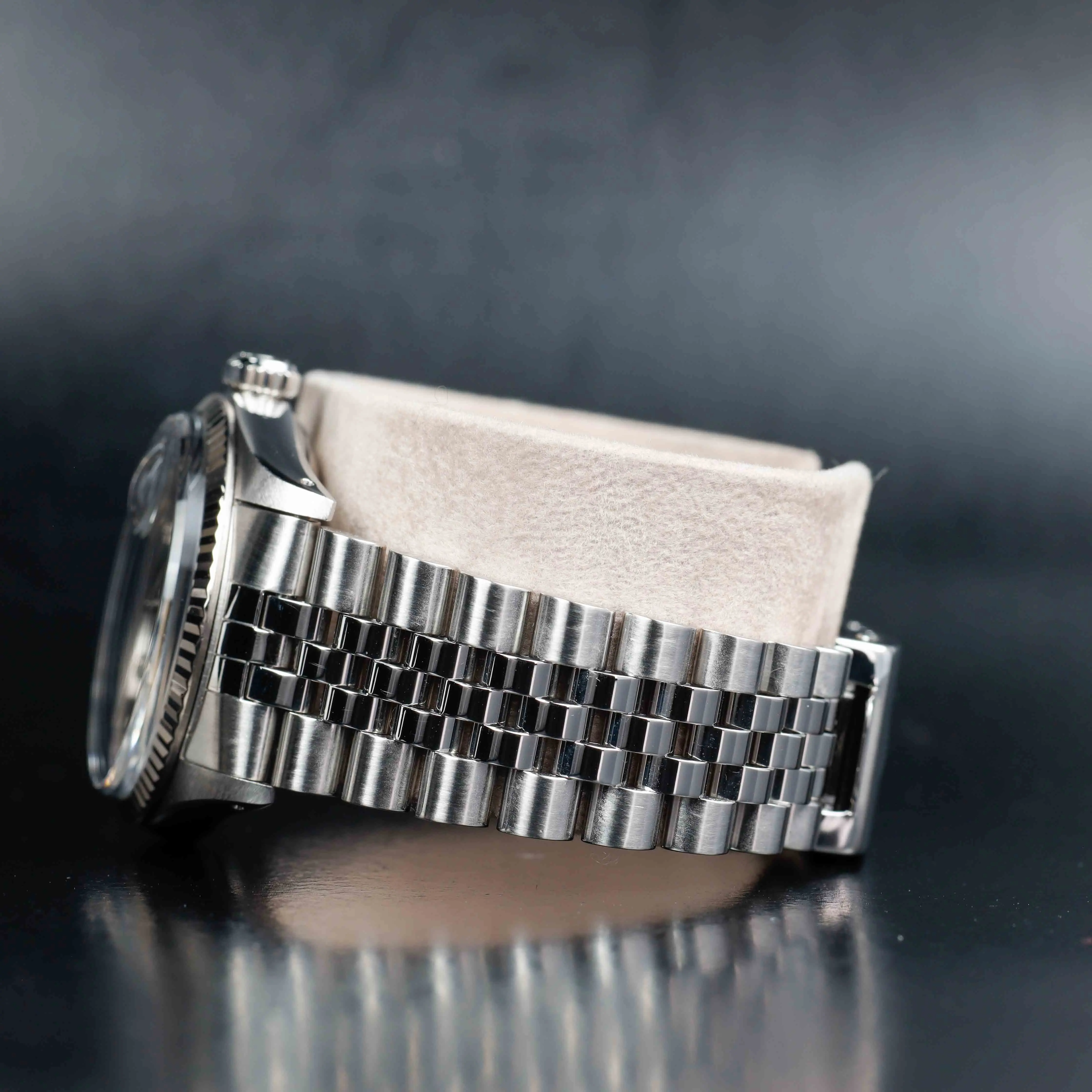 One of the largest evolutions for the Rolex Datejust model lineup was at the end of the 1970s with the introduction of the first "flat dial" Datejust. The movement was vastly upgraded to the Rolex Cal. 3035 quick-set movement. These Datejust variations are often referred to as "transitional" as they still feature the more classic acrylic crystals and tritium lume whilst housing many advancements.