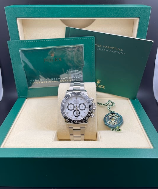 Introduced at BaselWorld 2016, the Rolex Daytona 116500ln-0001 features a stainless steel case and a black ceramic bezel and a white dial also called teh Panda Daytona. The Oyster Perpetual Cosmograph Daytona in Oystersteel with a white dial and an Oyster bracelet, features a black Cerachrom bezel with tachymetric scale.