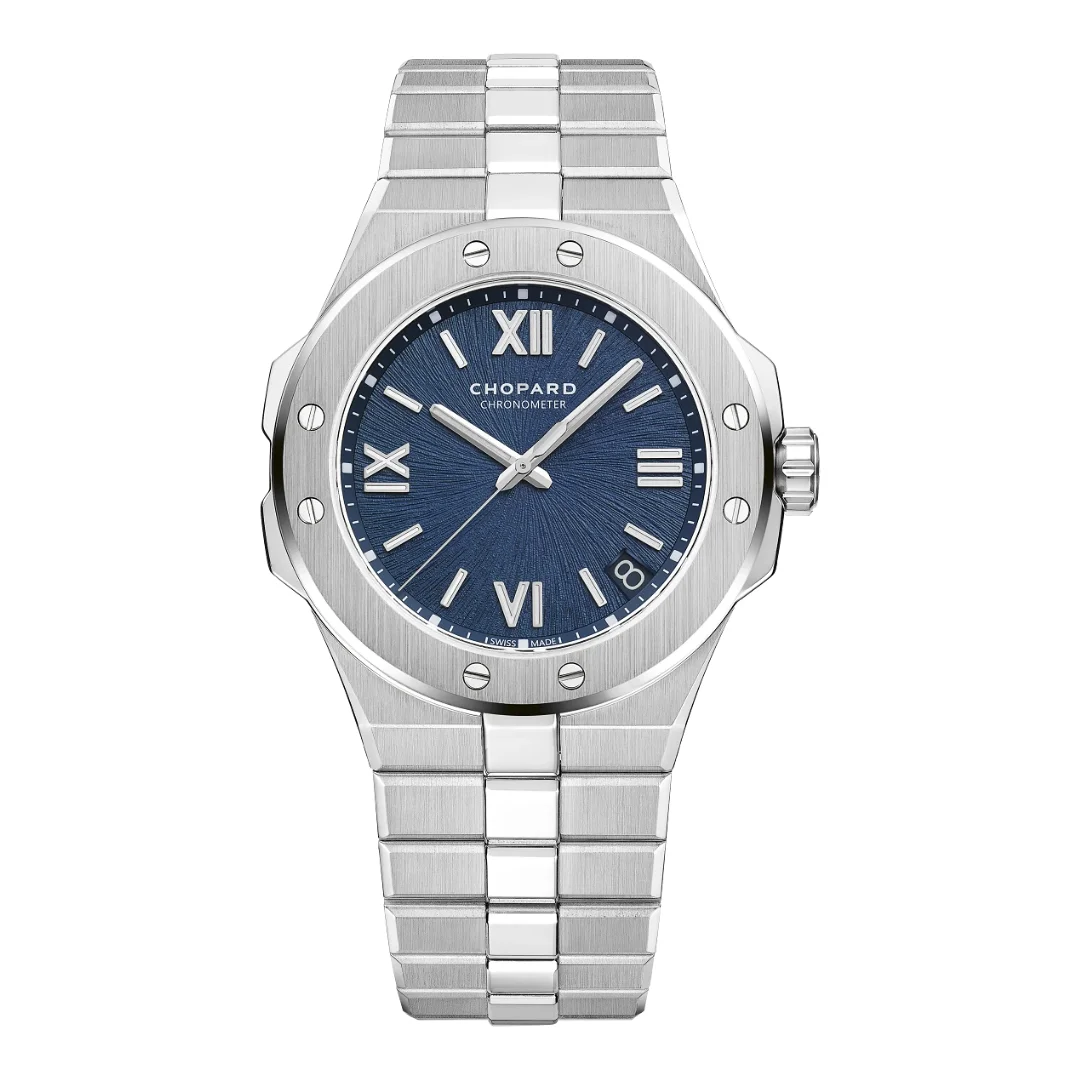 Chopard Alpine Eagle 41 mm Ref. 298600-3001 Both elegant and sporty, the new Alpine Eagle collection offers a modern interpretation of the St. Moritz, the first watch created by Karl-Friedrich Scheufele, now co-president of Chopard, released in 1980. Born from its creator’s passion for the Alps and inspired by the nobility of the eagle, this timepiece straight from Mr. Scheufele’s imagination is crafted from an exclusive, reflective and ultra-resistant metal called Lucent Steel™ and houses a chronometer-certified movement.