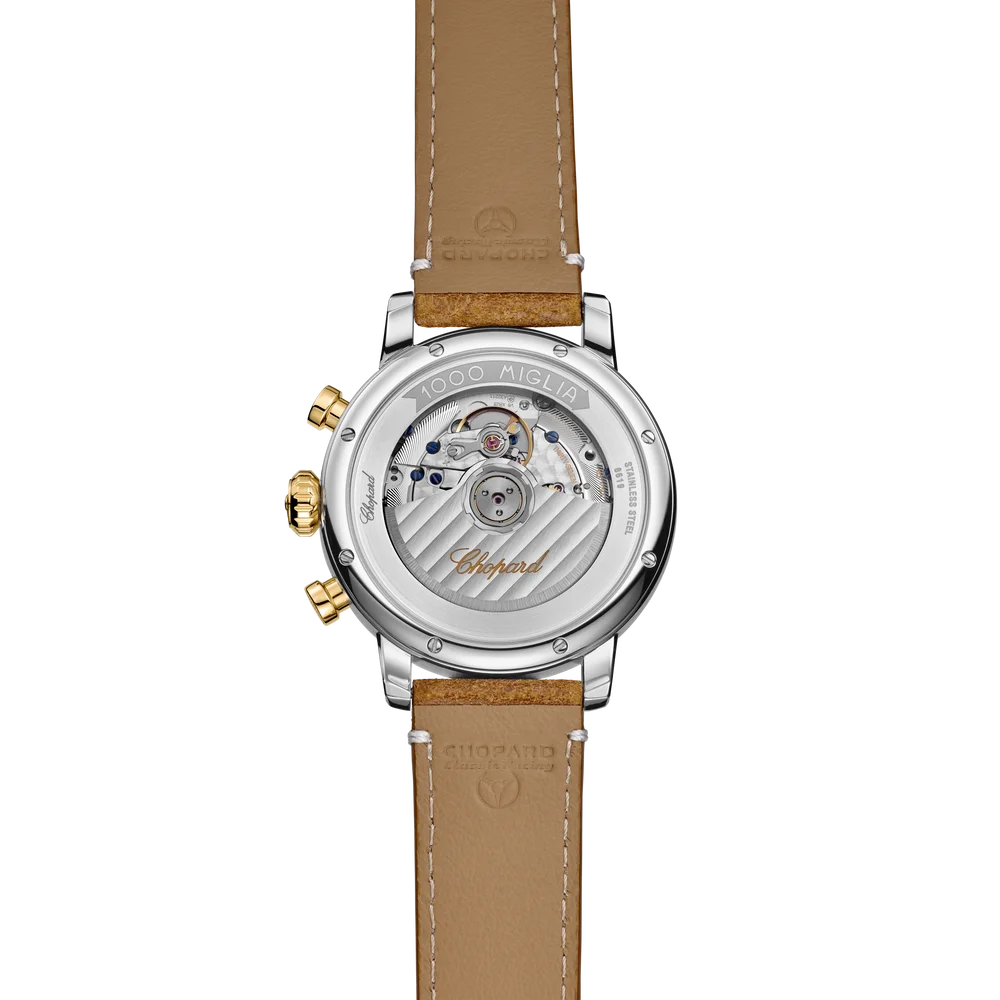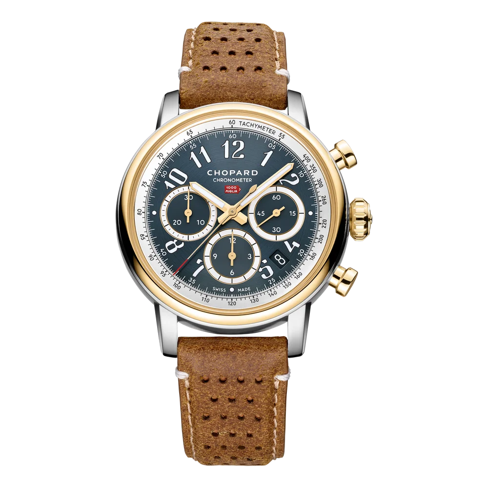 Chopard Mille Miglia Classic Chronograph Ref. 168619-4001 For 35 years, the hearts of Chopard and the 1000 Miglia have been beating in unison. As the official timekeeper of the world's most famous regularity race for classic cars, Chopard has developed the Mille Miglia Chronograph. This is how the love of aesthetic technology and top performance come together - born out of Karl-Friedrich Scheufele's personal passion for cars and motorsport.