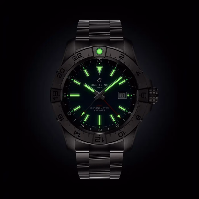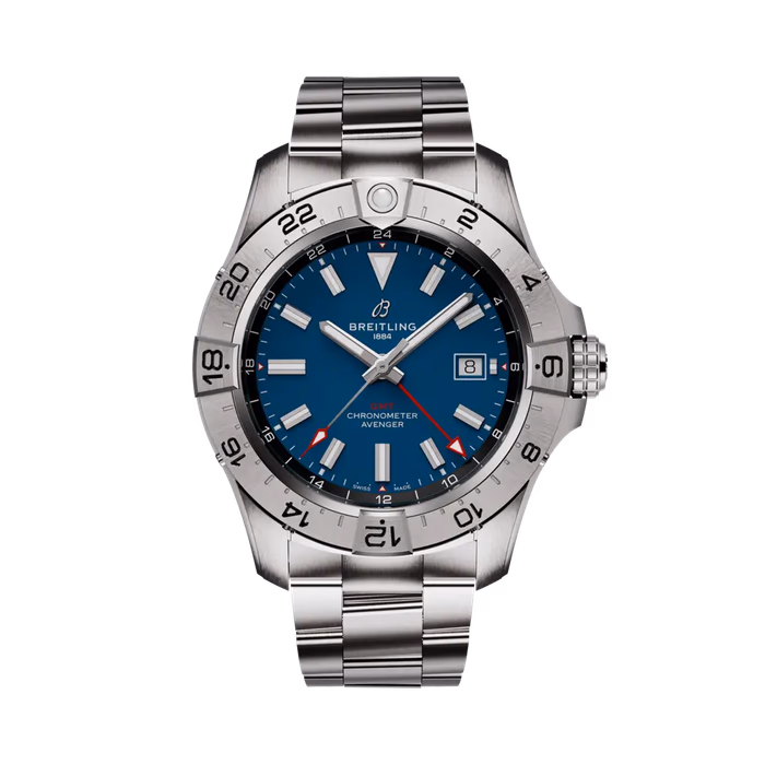 The Breitling Avenger Automatic 44 GMT A32320101C1A1 debuted in 2023. This watch has a stainless steel case with revolving bezel calibrated for 24 hours, which is water resistant up to 300 meters. It houses the self-winding caliber Caliber 32. For this version, the dial is Blue.