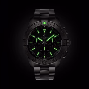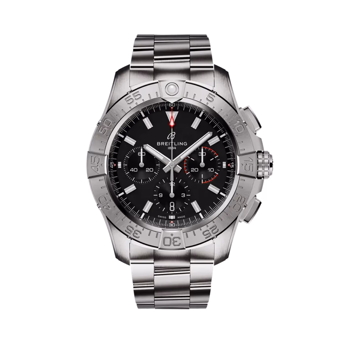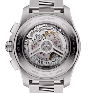 The Breitling Avenger B01 Chronograph 44 AB0147101B1A1 debuted in 2023. This watch has a stainless steel case water resistant up to 300 meters, which houses the brand's in-house caliber Caliber B01. For this version, the dial is Black.