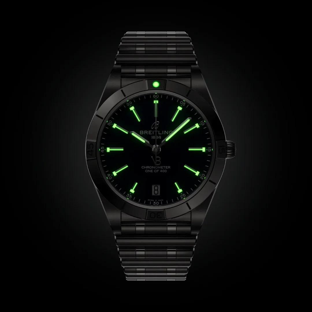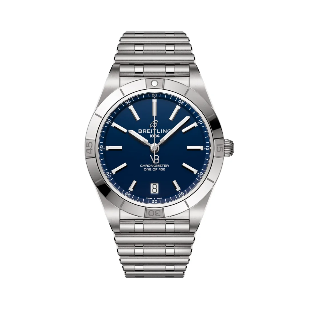 The Breitling Chronomat Automatic 36 Victoria Beckham reference A103801A1C1A1 has a stainless steel case paired with a matching Rouleaux bracelet. The dial is Blue. Inside ticks the self-winding caliber Caliber 10. This watch was designed in collaboration with Victoria Beckham.