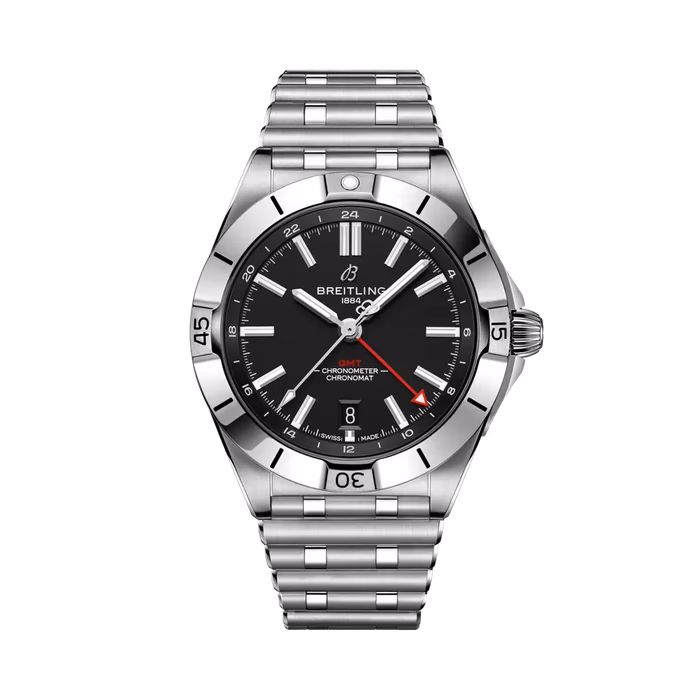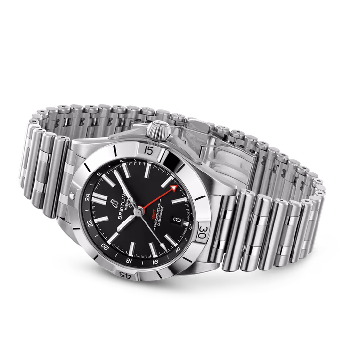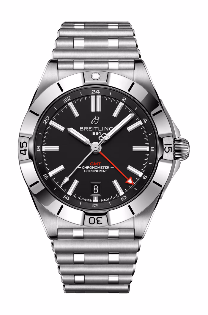The Breitling Chronomat 40 GMT was introduced in 2022. This Chronomast has a case of 40.00, housing a self-winding movement with GMT function (caliber Caliber 32). For reference A32398101B1A1, the dial is Black.