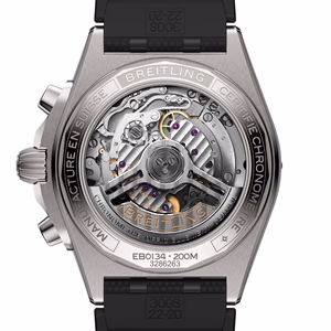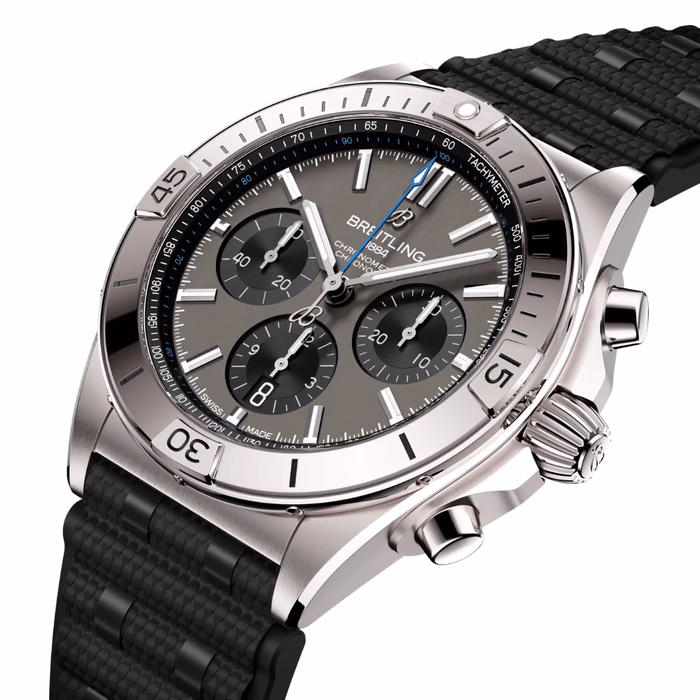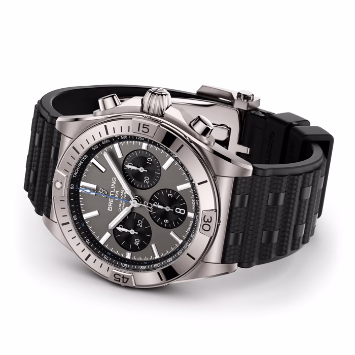 The Breitling Chronomat B01 42 was introduced in 2020. A complete revamp of Breitling's evergreen, this new version sports a sleeker case with more clearly defined angles, a redesigned bezel, and the option of a brand-new 'Rouleaux' style bracelet. Inside ticks Breitling's in-house B01 movement. Reference EB0134101M1S1 has a titanium case and a Grey dial.