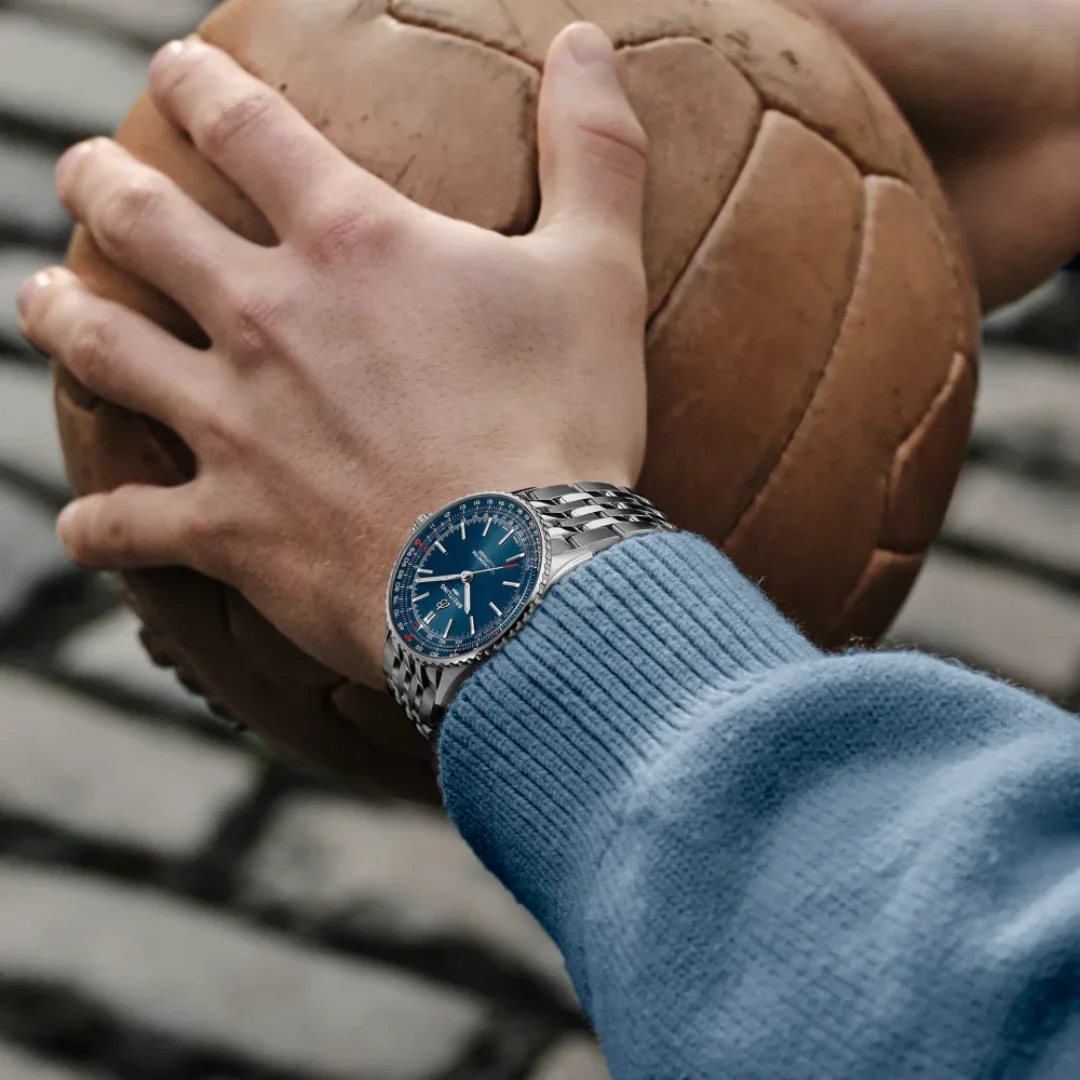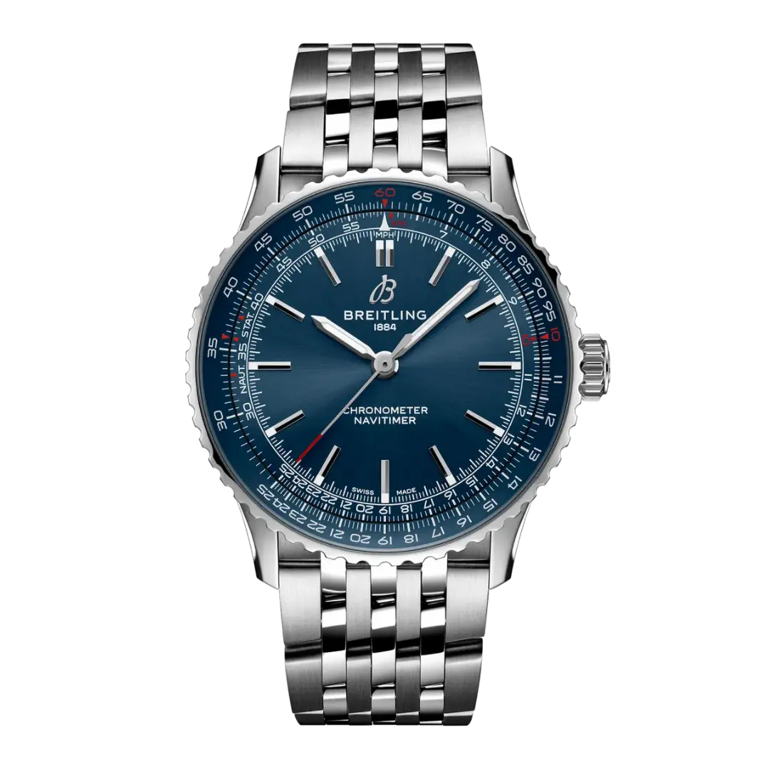 The Breitling Navitimer Automatic 41 Ref. A17329161C1A1 was introduced in 2024. The case measures 41mm across, housing the self-winding caliber B17. The dial is Blue.