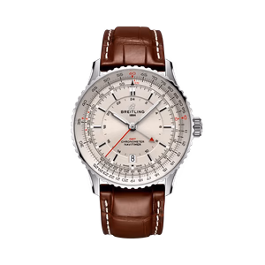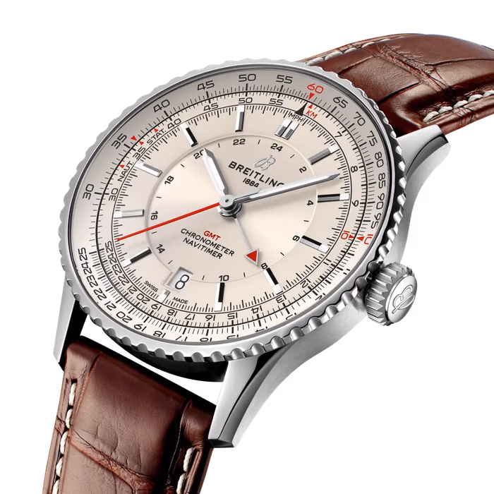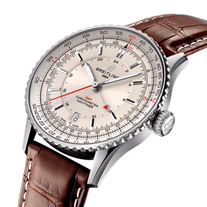 The Breitling Navitimer GMT A32310211G1P1 debuted in 2024. This Navitimer has a Stainless Steel case of 41.00mm, and a Silver dial. This watch is powered by Caliber 32, a self-winding movement with additional 24-hour hand and date function.