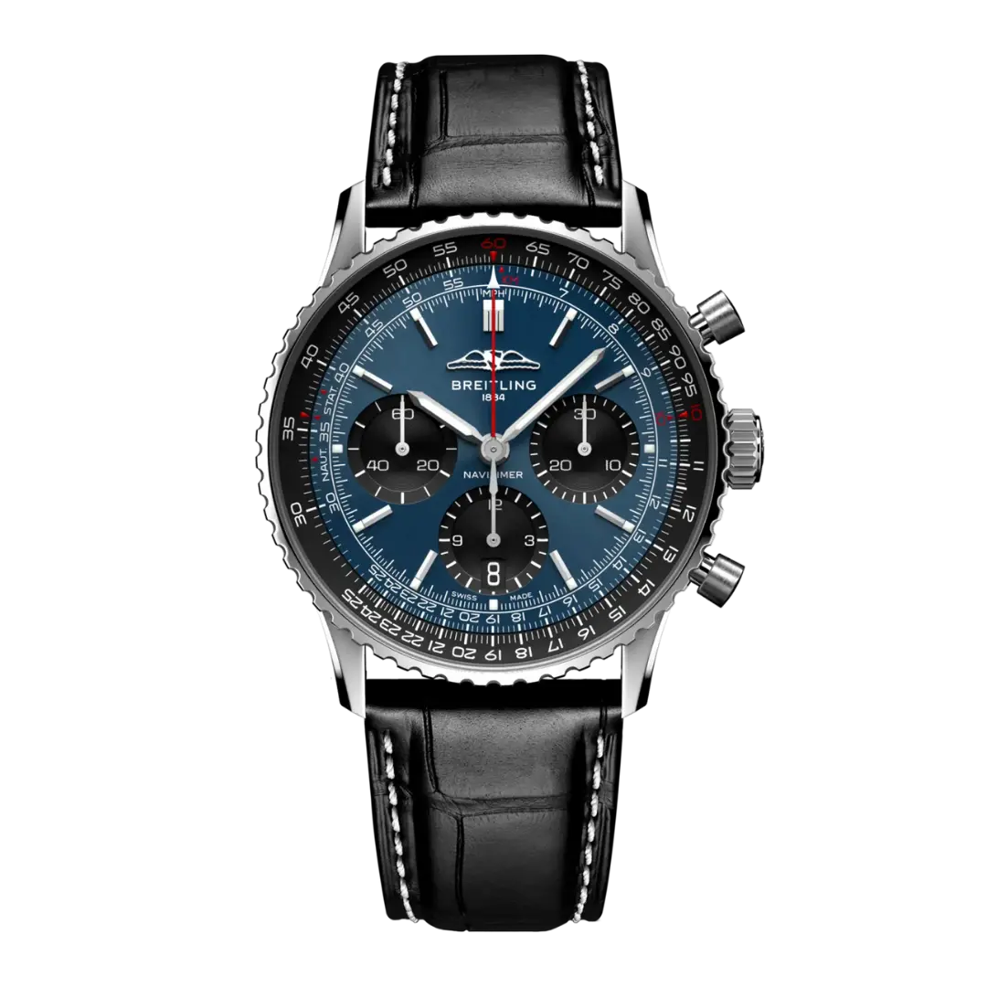 The Breitling Navitimer reference AB0139241C1P1 is part of Breitling's 2022 refresh of the iconic slide rule chronograph. This version has a Stainless Steel case of 41.00mm, which houses the brand's in-house caliber Caliber B01. The dial, with AOPA-inspired wing logo, is mint Blue. Breitling’s iconic pilot’s chronograph – for the journey. In 1952, Willy Breitling developed a wrist-worn chronograph with a circular slide rule that would allow pilots to perform all necessary flight calculations.