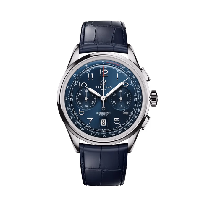The Premier B01 Chronograph ref. AB0145171C1P2 was introduced in 2023 as a redesign of the original 2018 Premier B01 Chronograph 42. This watch is powered by Breitling's in-house caliber B01 movement, which is fitted inside a stainless steel case of 42mm. The dial is Blue.