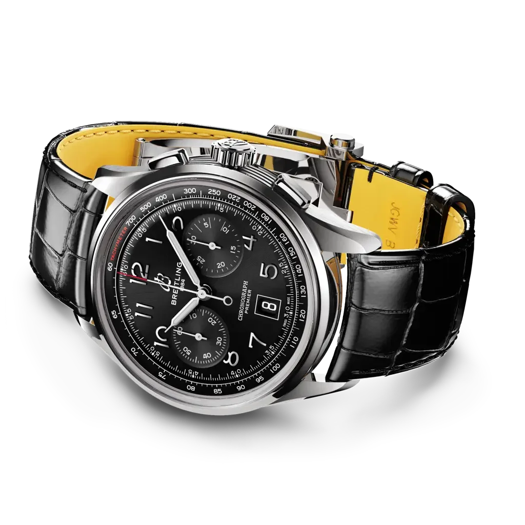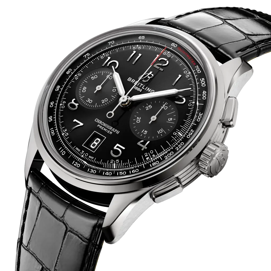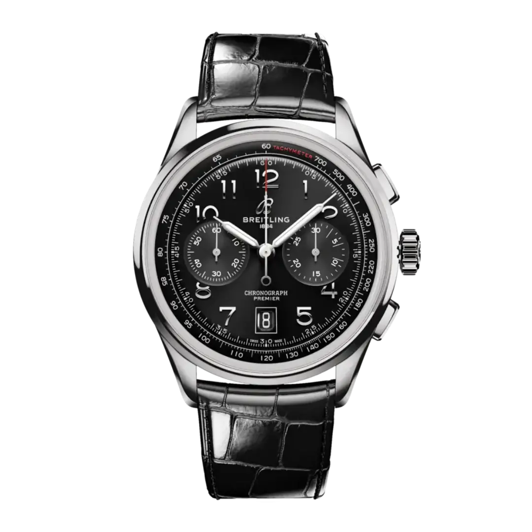 The Premier B01 Chronograph ref. AB0145221B1P1 was introduced in 2023 as a redesign of the original 2018 Premier B01 Chronograph 42. This watch is powered by Breitling's in-house caliber B01 movement, which is fitted inside a stainless steel case of 42mm. The dial is Black.