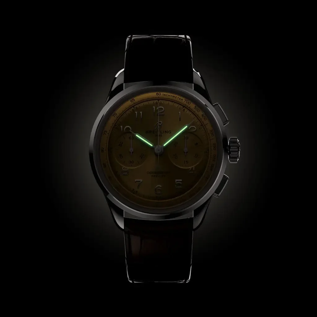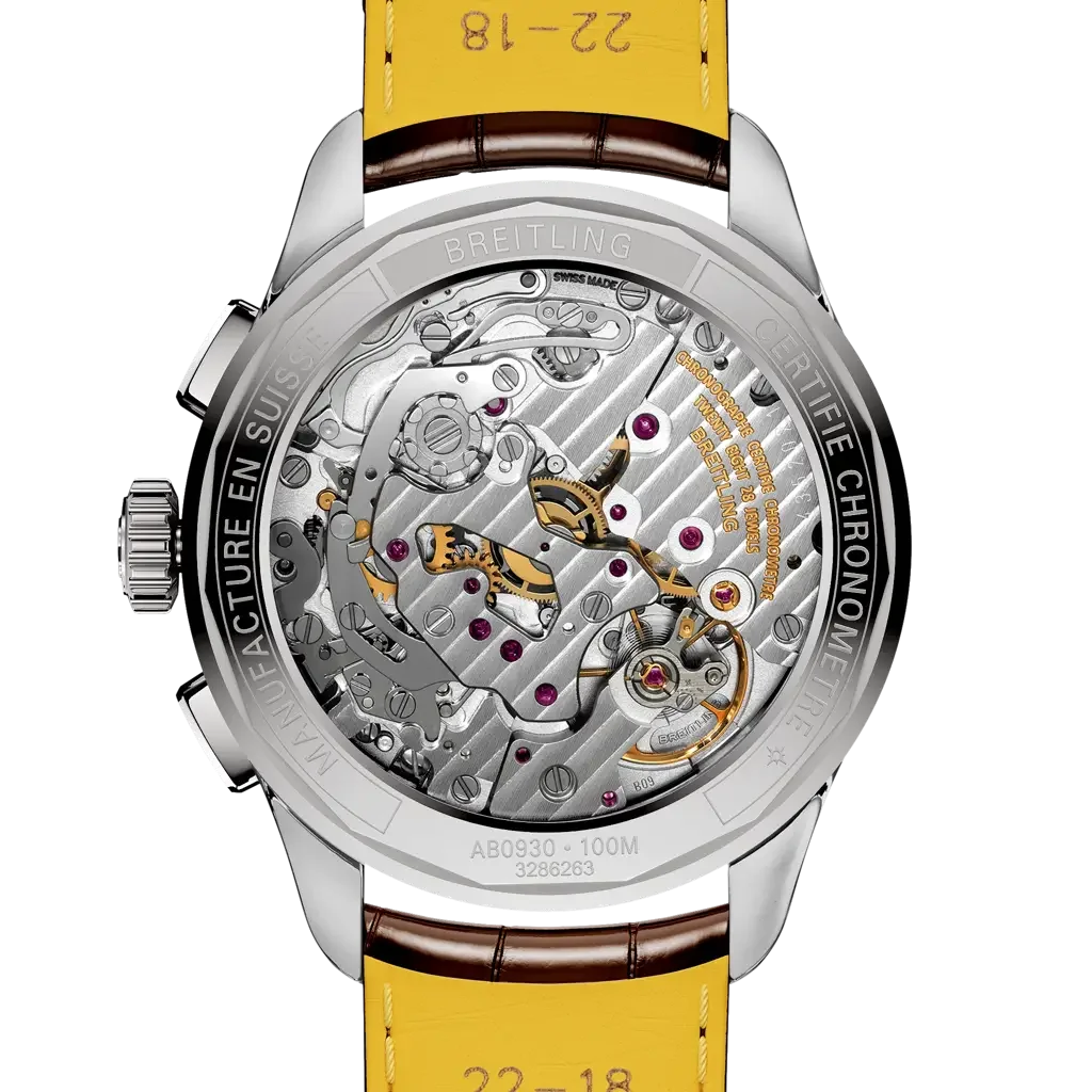 The Breitling Premier Heritage reference AB0930F51H1P1 was introduced in 2023. This watch has a Stainless Steel case of 40.00mm, which holds a hand-wound caliber Caliber B09 movement with chronograph. The dial is Champagne.