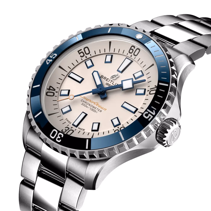 The Breitling SuperOcean Automatic A17375E71G1A1 debuted in 2022 as part of a renewed SuperOcean collection inspired by the 'Slow Motion' of the 1960's. This version has a case of 42.00mm with a ceramic bezel insert, and a White dial. The movement within is Breitling's trusted caliber Caliber 17 ND.