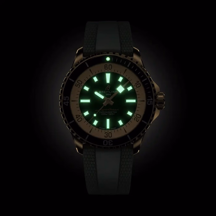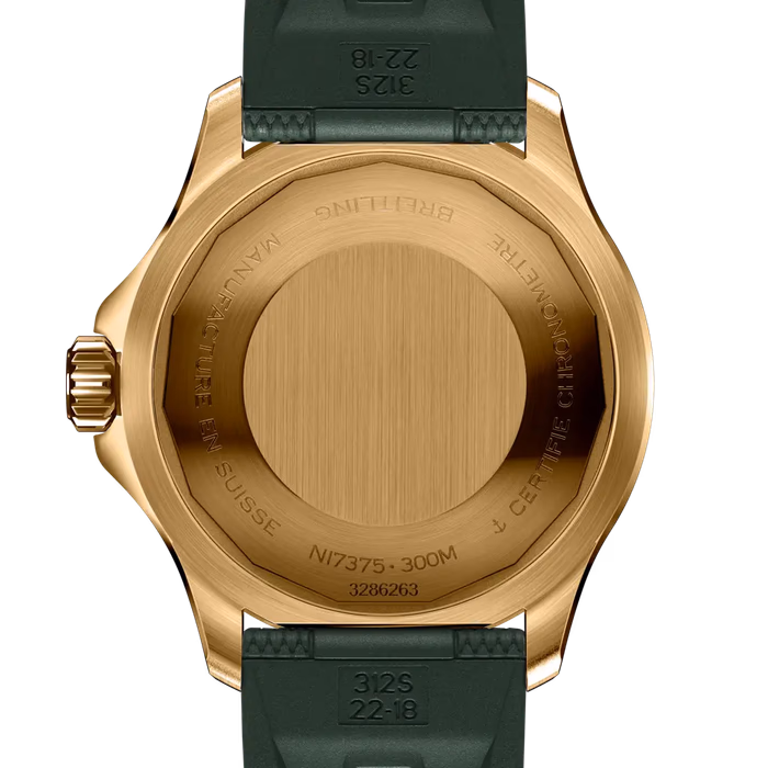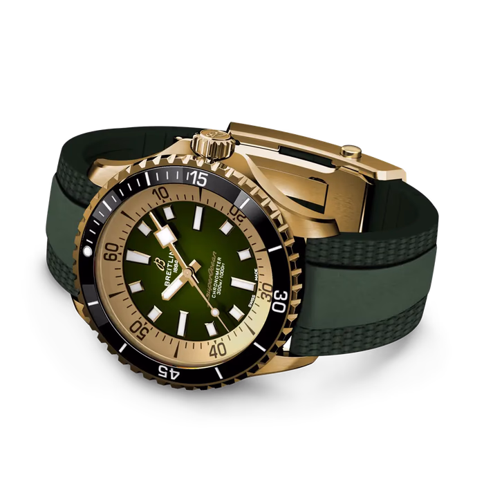 The Breitling SuperOcean Automatic N17375201L1S1 debuted in 2022 as part of a renewed SuperOcean collection inspired by the 'Slow Motion' of the 1960's. This version has a bronze case of 42.00mm with a ceramic bezel insert, and a Green dial. The movement within is Breitling's trusted caliber Caliber 17 ND.