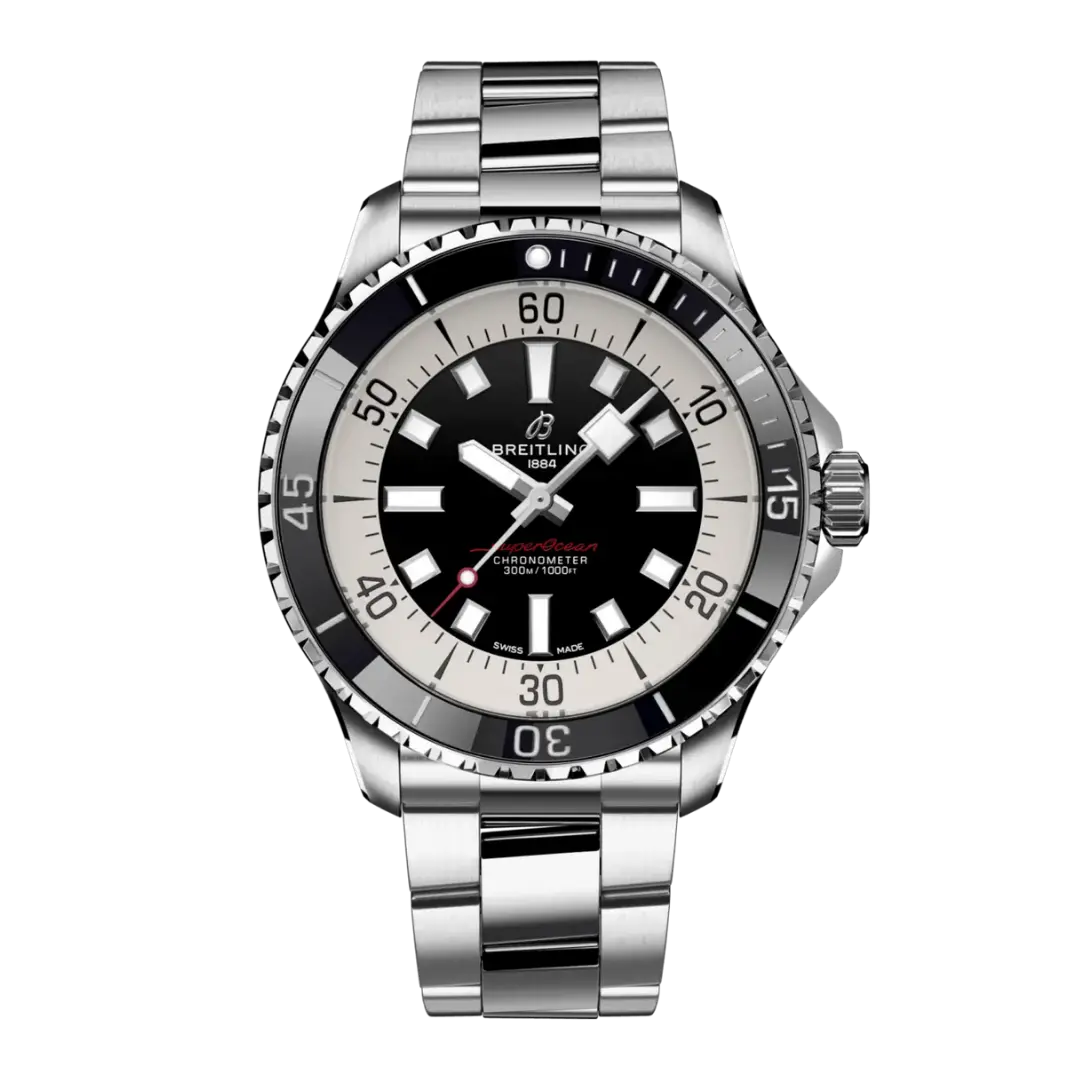 The Breitling SuperOcean Automatic A17376211B1A1 debuted in 2022 as part of a renewed SuperOcean collection inspired by the 'Slow Motion' of the 1960's. This version has a case of 44.00mm with a ceramic bezel insert, and a Black dial. The movement within is Breitling's trusted caliber Caliber 17 ND.