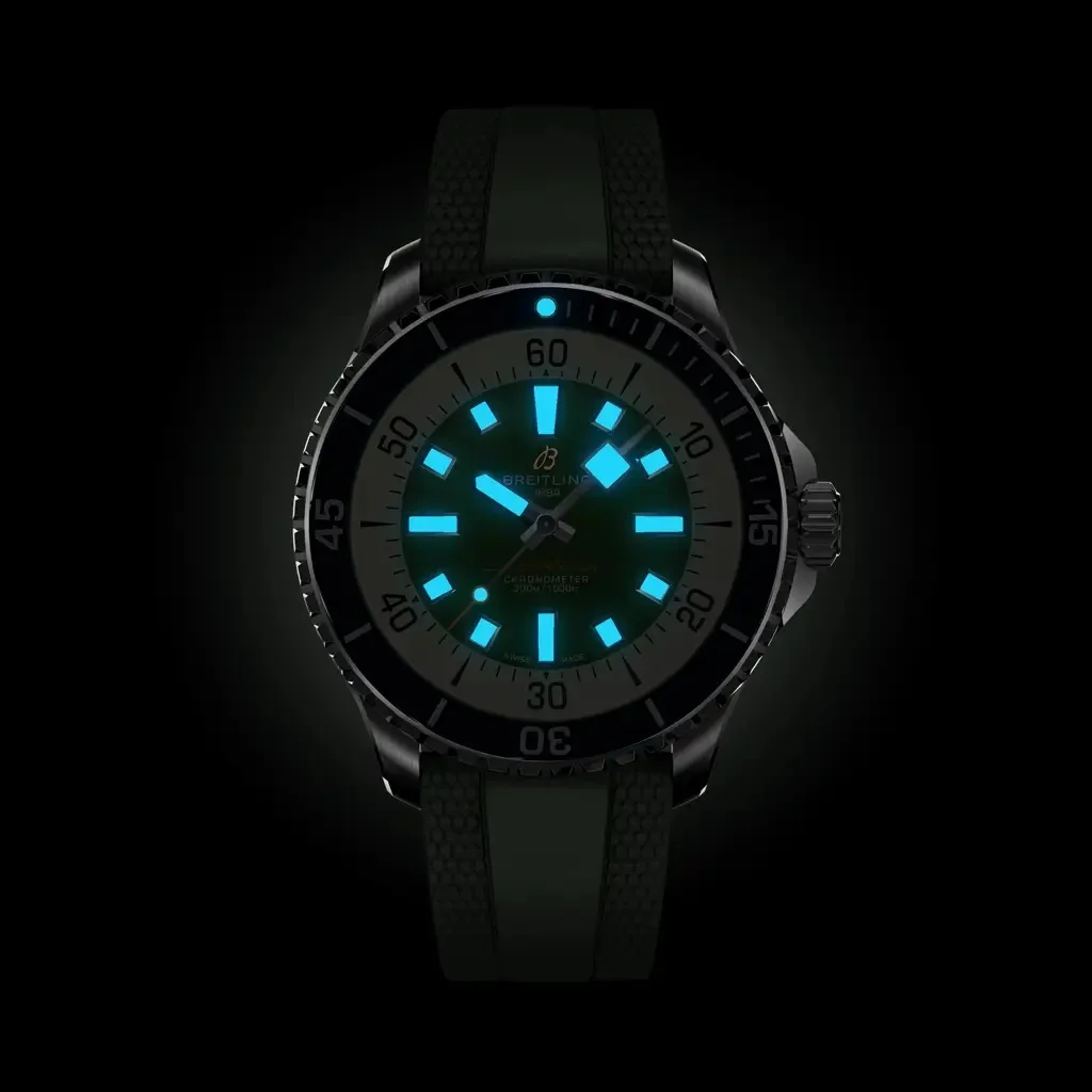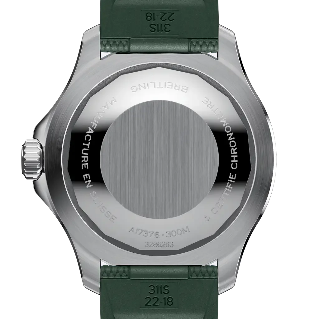 The Breitling SuperOcean Automatic Ref. A17376A31L1S1 debuted in 2022 as part of a renewed SuperOcean collection inspired by the 'Slow Motion' of the 1960's. This version has a case of 44.00mm with a ceramic bezel insert, and a Green dial. The movement within is Breitling's trusted caliber Caliber 17 ND.