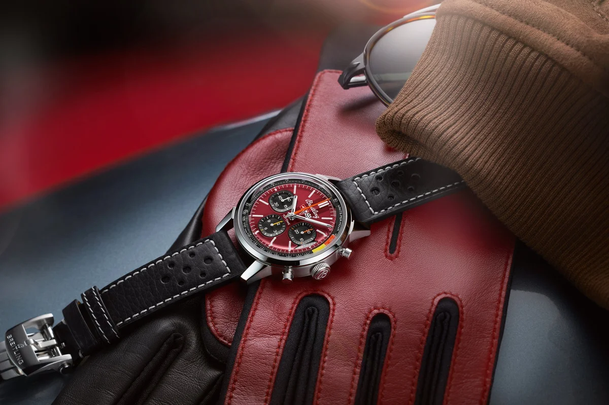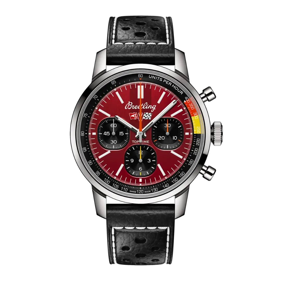 The Breitling Top Time B01 Reference AB01761A1K1X1 is inspired by the Chevrolet Corvette and has a Red dial. It was introduced in 2023. This watch -a modernized take on the original Top Time of the 1960's- features a Stainless Steel case of 41.00mm, which houses Breitling's in-house caliber Caliber B01 ND (No Date).