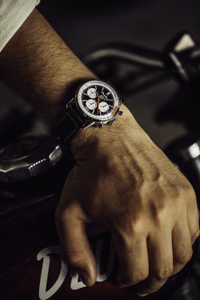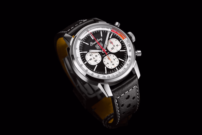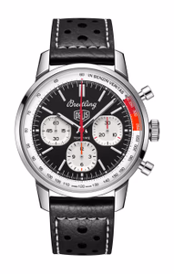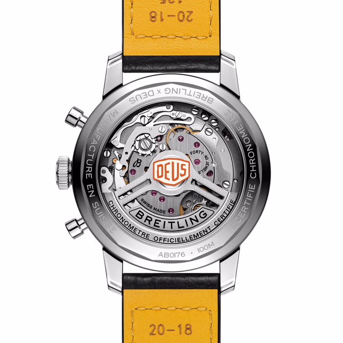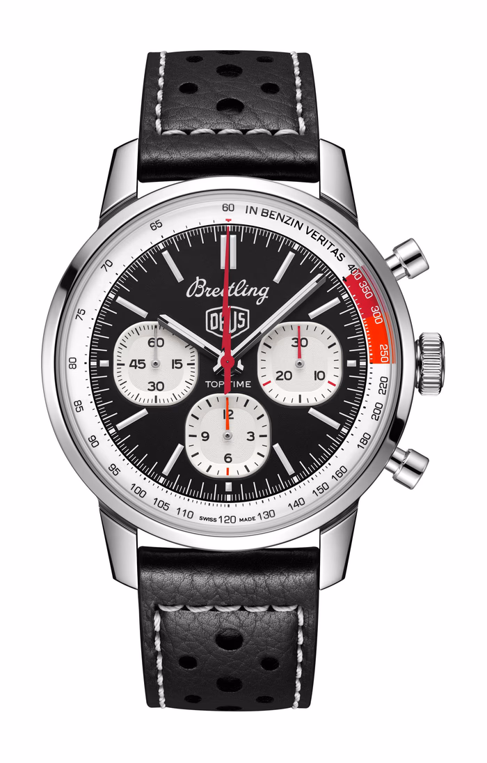 The Breitling Top Time B01 was introduced in 2023. This watch -a modernized take on the original Top Time of the 1960's- features a Stainless Steel case of 41.00mm, which houses Breitling's in-house caliber Caliber B01 ND (No Date). Reference AB01765A1B1X1 is designed in collaboration with Australian surf-and-motorcycle outfitter Deus Ex Machina.