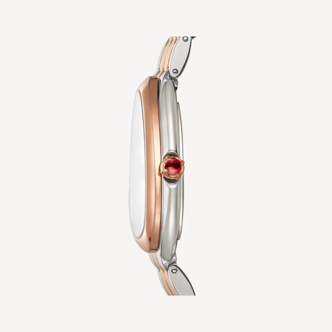Serpenti Seduttori Uhr mit Gehäuse und Armband aus Edelstahl und 18 Karat Roségold sowie mit silberweißem Opalin-Zifferblatt
