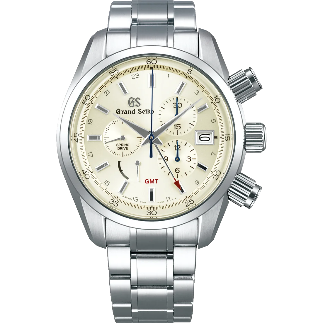 Grand Seiko's original glide motion is also featured in the chronograph's blue steel second hand.