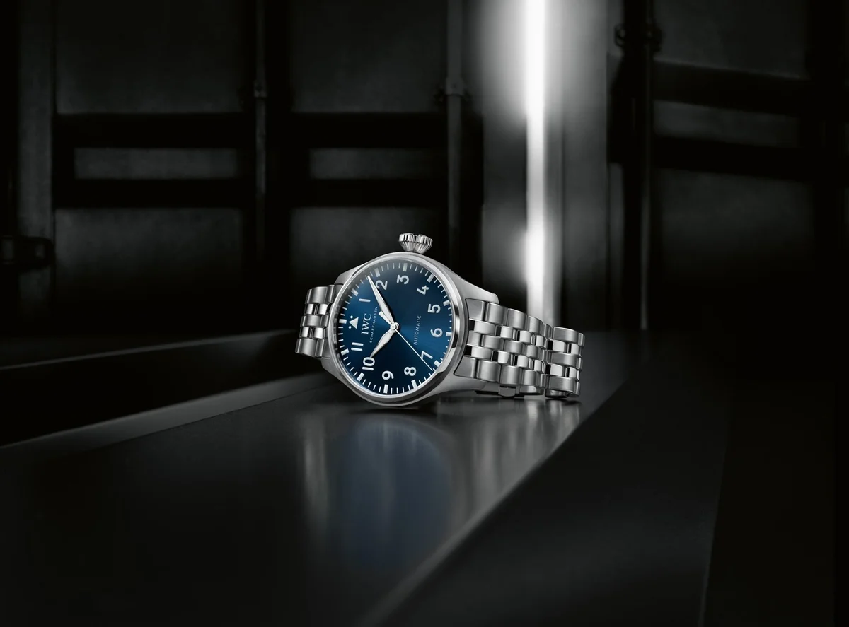 Introduced in 2021, the IWC Big Pilot 43 reference IW329304 has a Stainless Steel case of 43.00mm and a Blue dial. Inside ticks the self-winding caliber 82100, which can be admired through the see-through back.