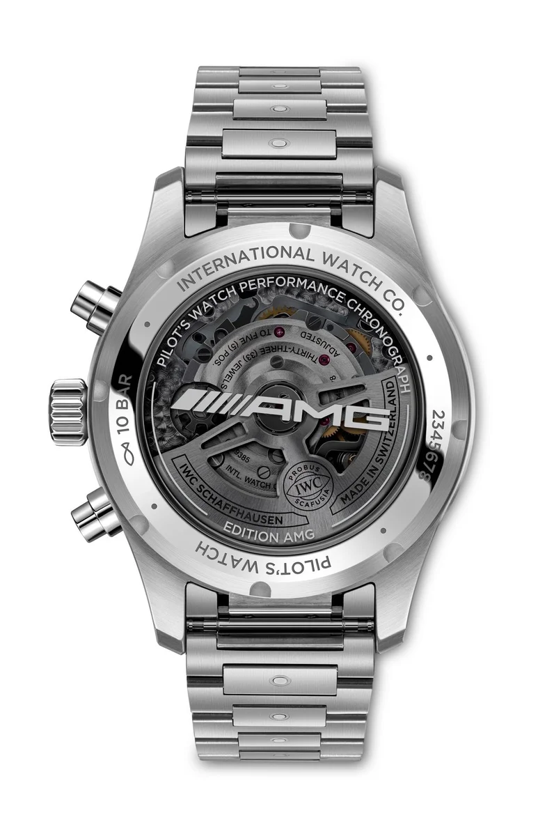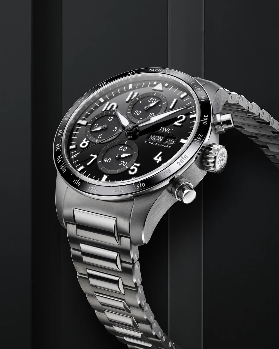 The IWC Pilot's Watch Performance was introduced in 2021. This watch -developed in partnership with Mercedes-AMG- adds a ceramic tachymeter insert to IWC's emblematic pilot's chronograph. Inside ticks IWC's caliber 69385. Dressed up as reference IW3883-04, a titanium case is paired with a Black dial.