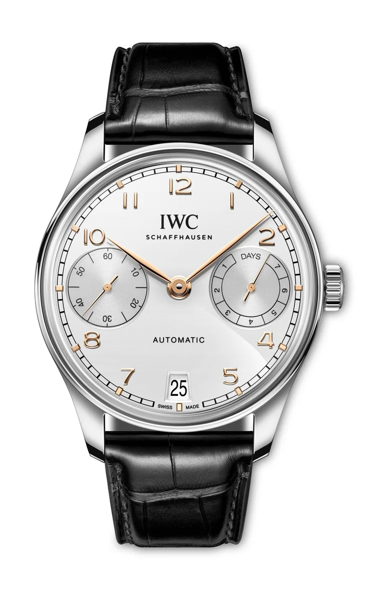 The 2024 IWC Portugieser Automatic 42 Ref. IW501701 is the successor of the 2015 IW5007 generation. This IWC Portugieser has a case of 42.40 with a height of 12.9mm; it is powered by caliber 52011, an updated version of the earlier 52010 which was first seen in the AMG G-Wagon iterations of the Big Pilot. For reference IW501701, the case is crafted from Stainless Steel; the dial is Silver.