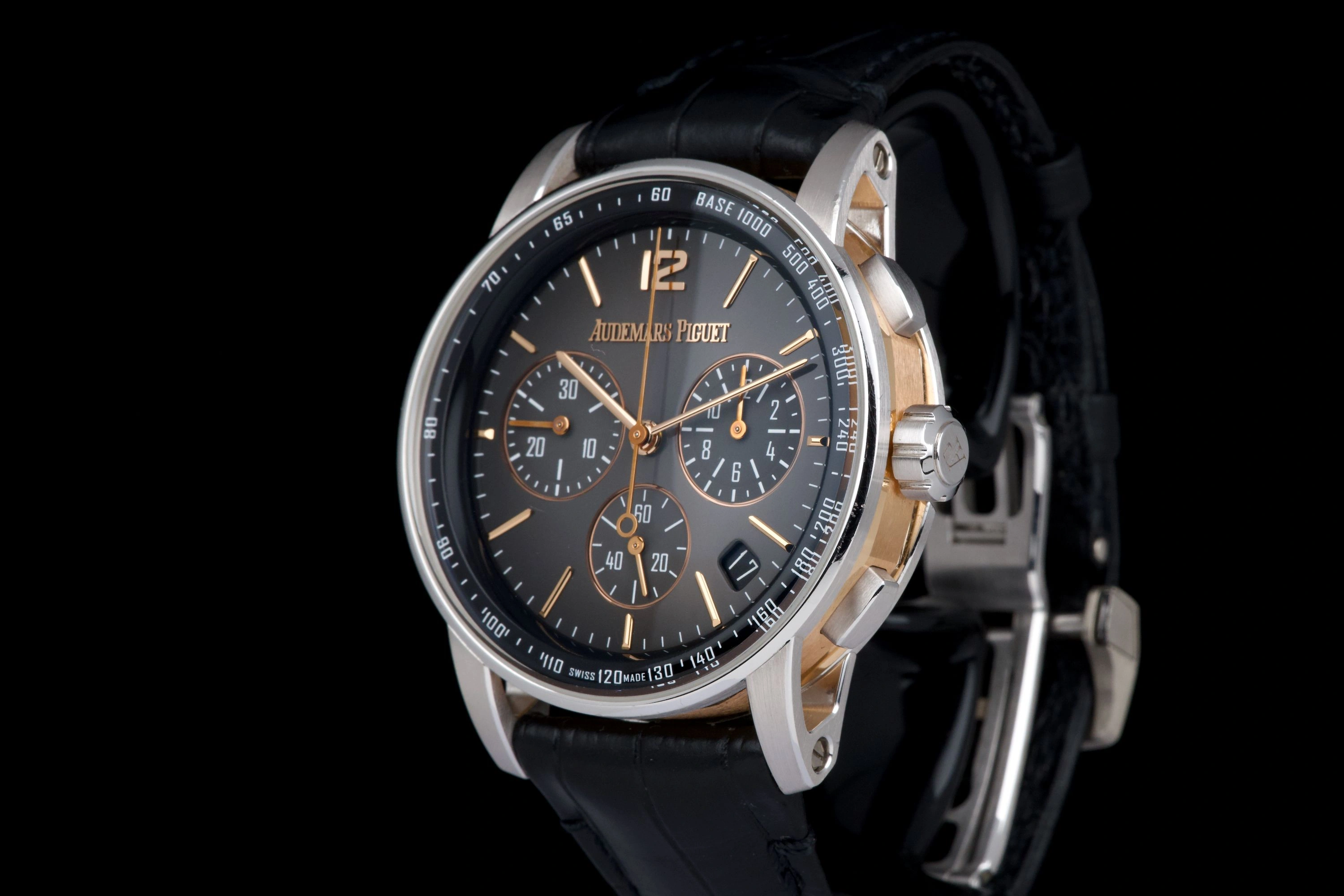 A very attractive example of the Audemars Piguet Code 11.59 Chronograph in two-tone rose and white gold. The watch comes from its original owner and has never been polished.