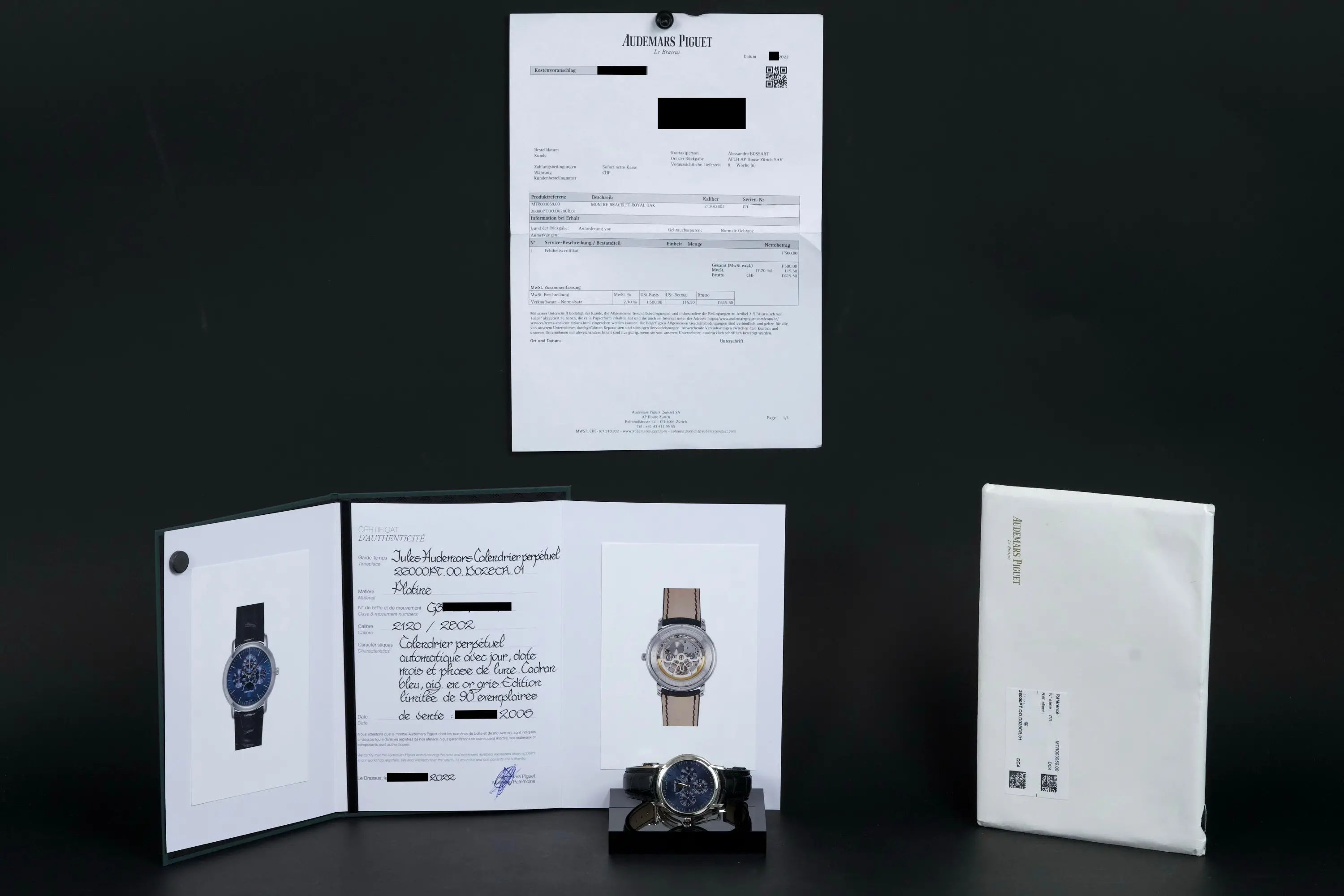 Importantly, the watch is accompanied by a Certificate of Authenticity issued by Audemars Piguet in 2022, providing valuable confirmation of its originality and configuration.