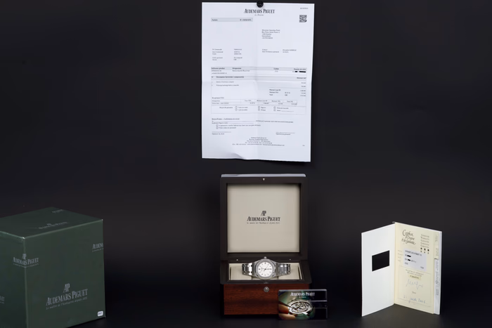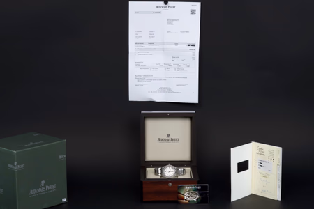 The watch has just returned from a complete service (including light polishing) by Audemars Piguet in 2025, and is therefore covered by a two-year AP service warranty.