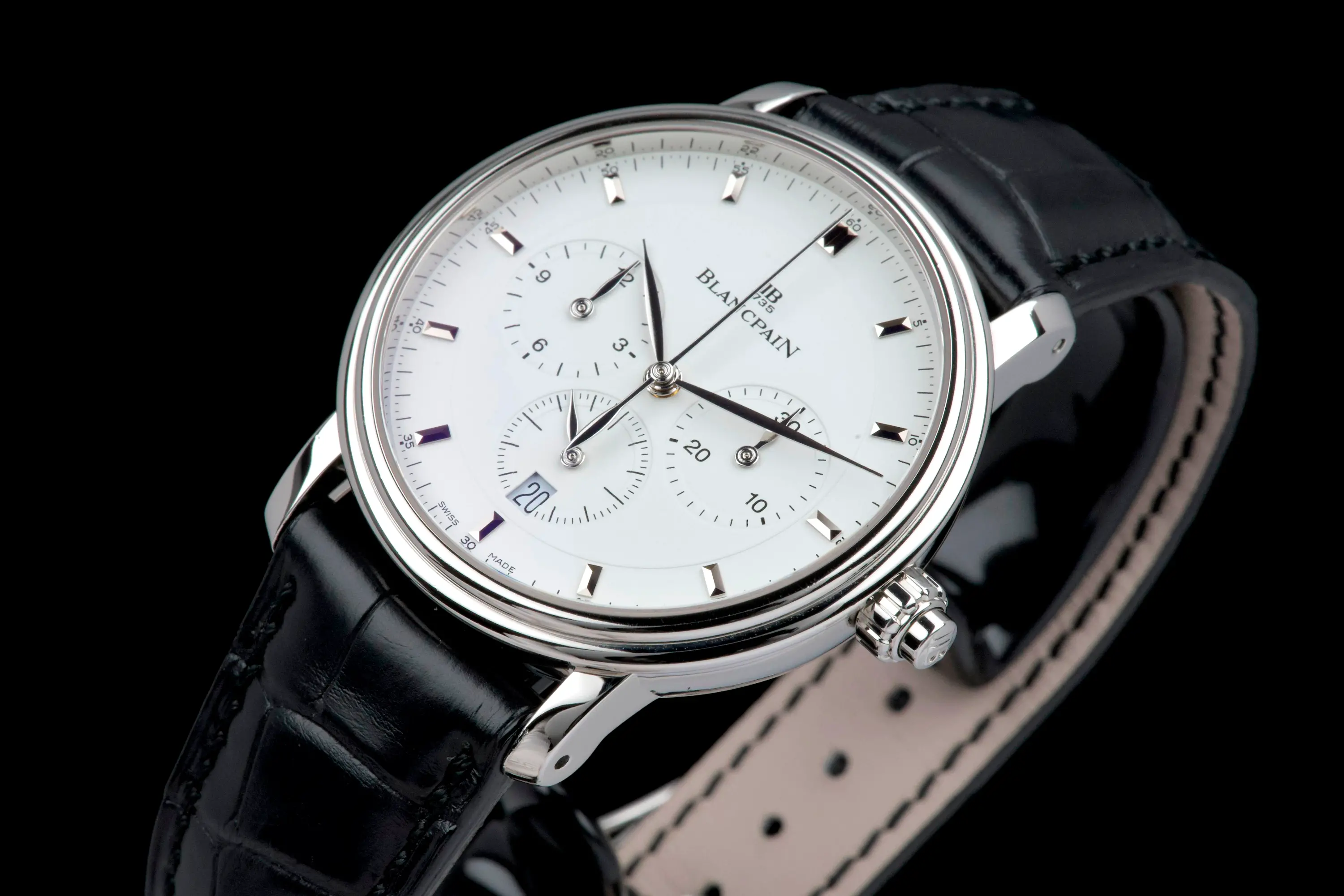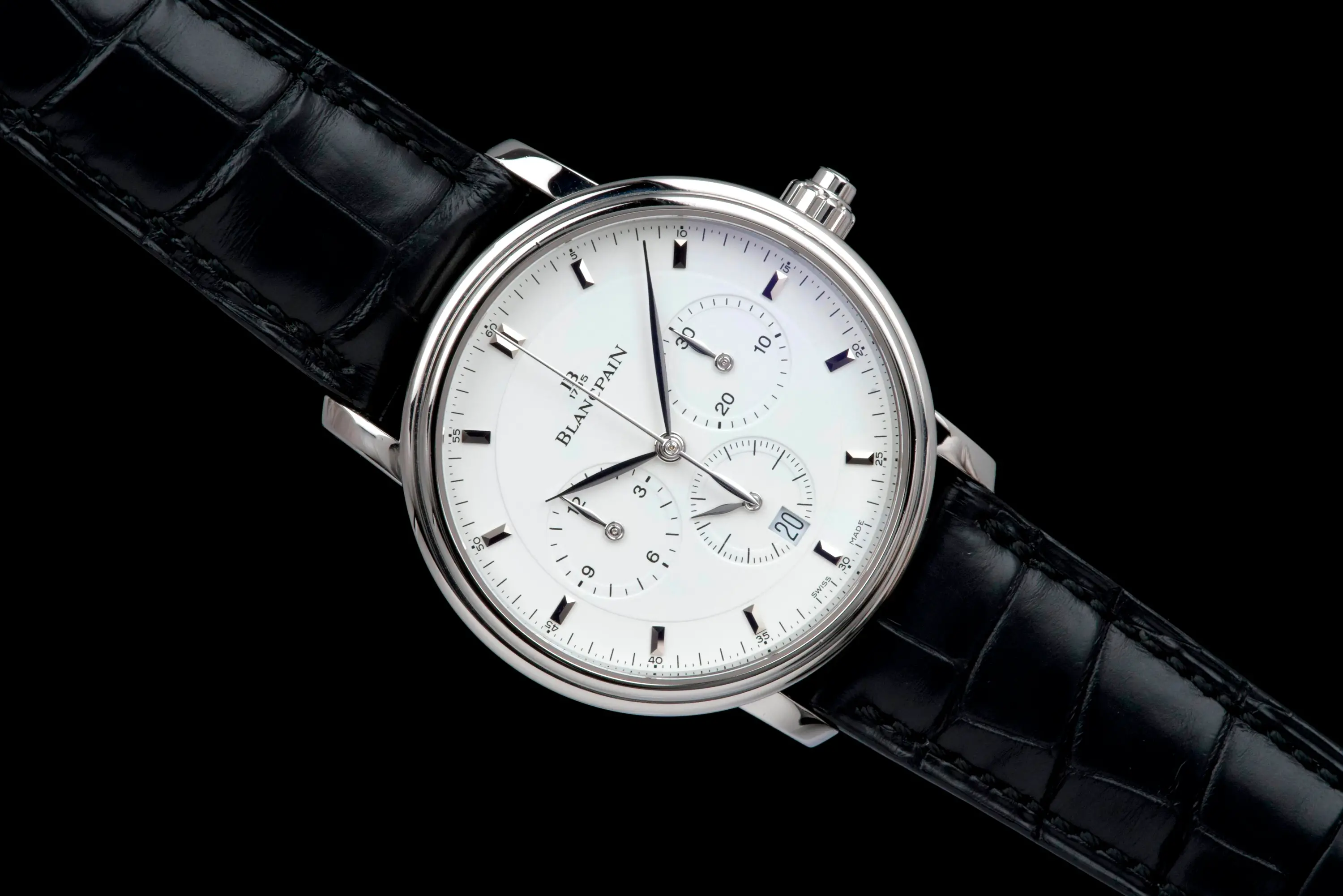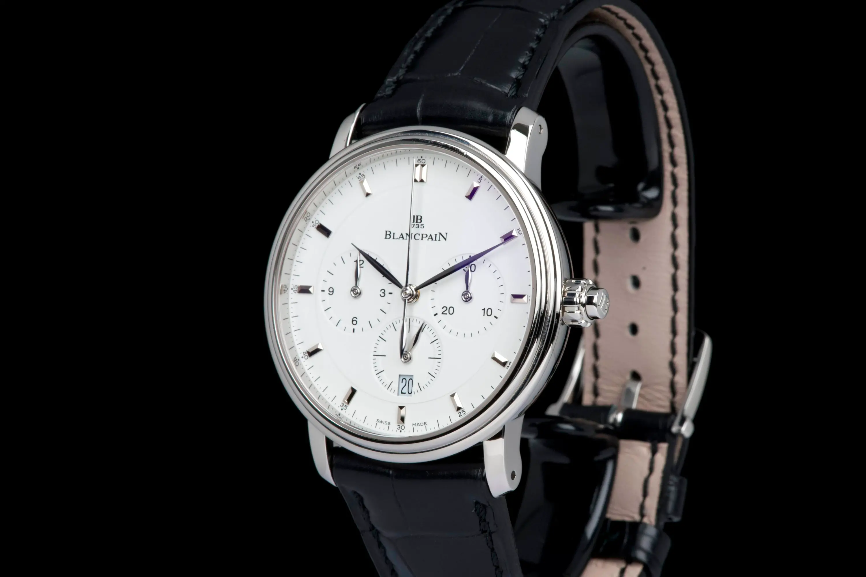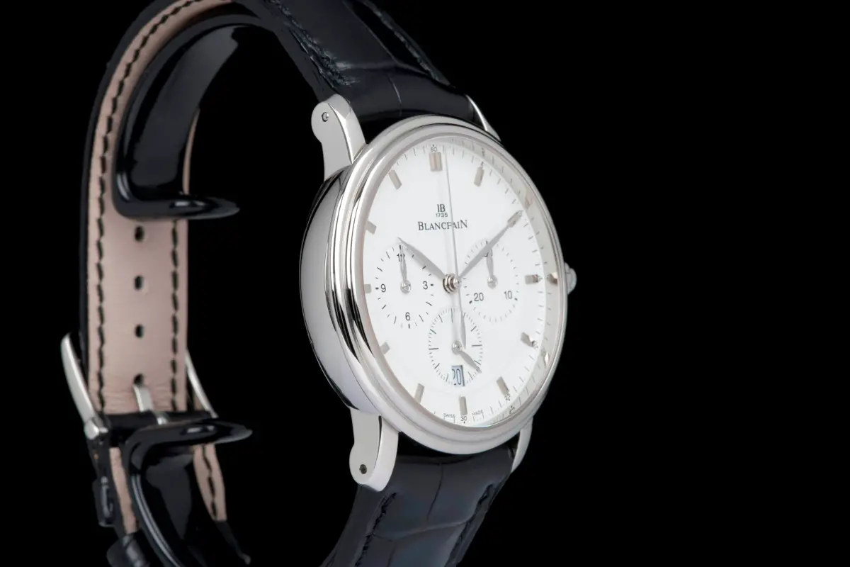 Presented here is a rare and elegant Blancpain Villeret Chronograph Monopusher, reference 6185-1127-95
