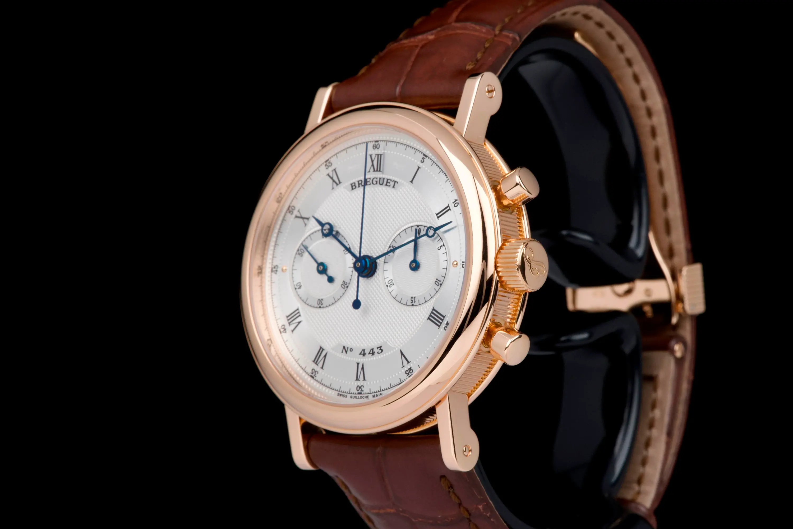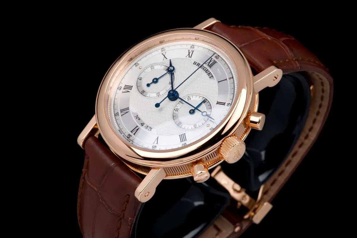 Presented here is an elegant and refined example of the Breguet Classique Chronograph reference 5327BR, crafted in rose gold and dating to circa 2003.
