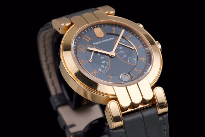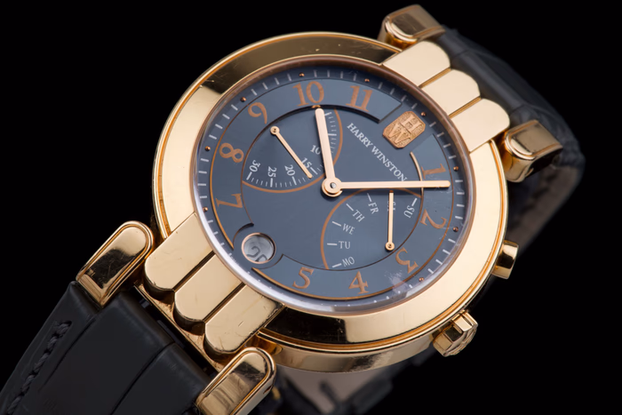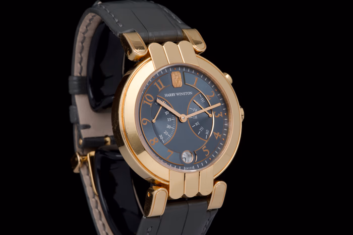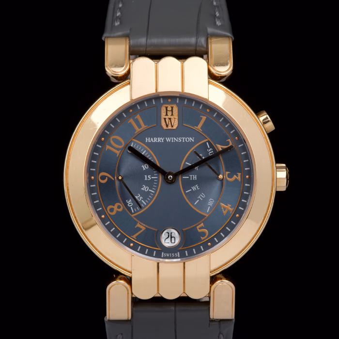 Harry Winston Premier Excenter Bi-Retrograde in rose gold, reference 200-MAB137R, from the early 2000s.