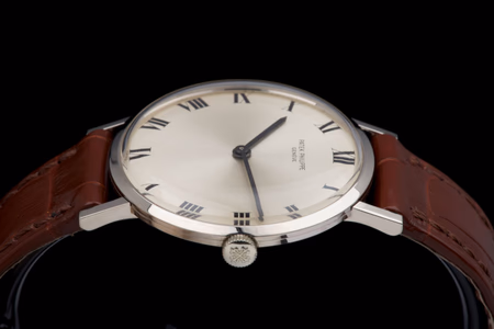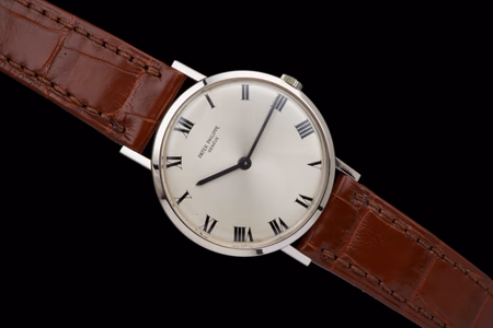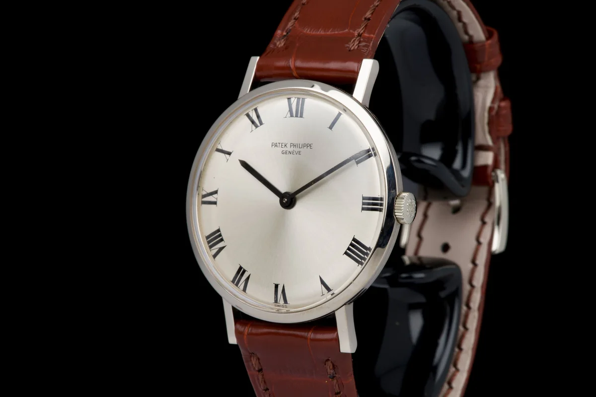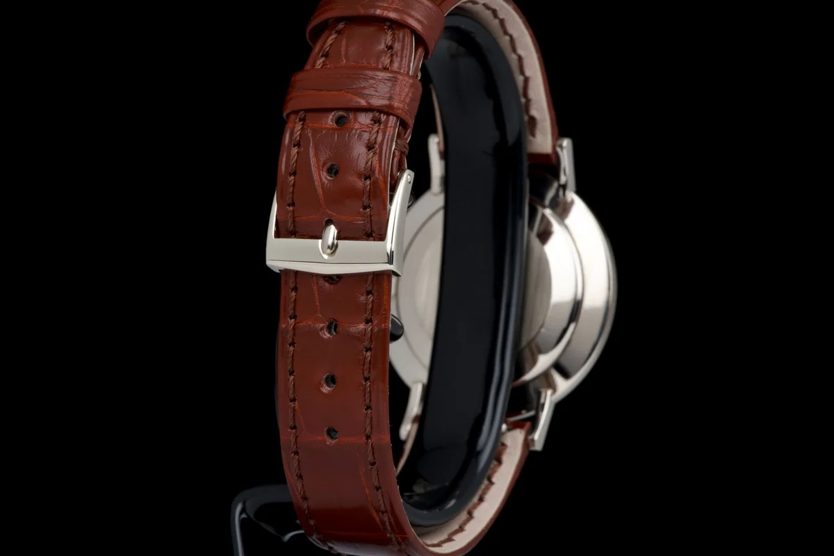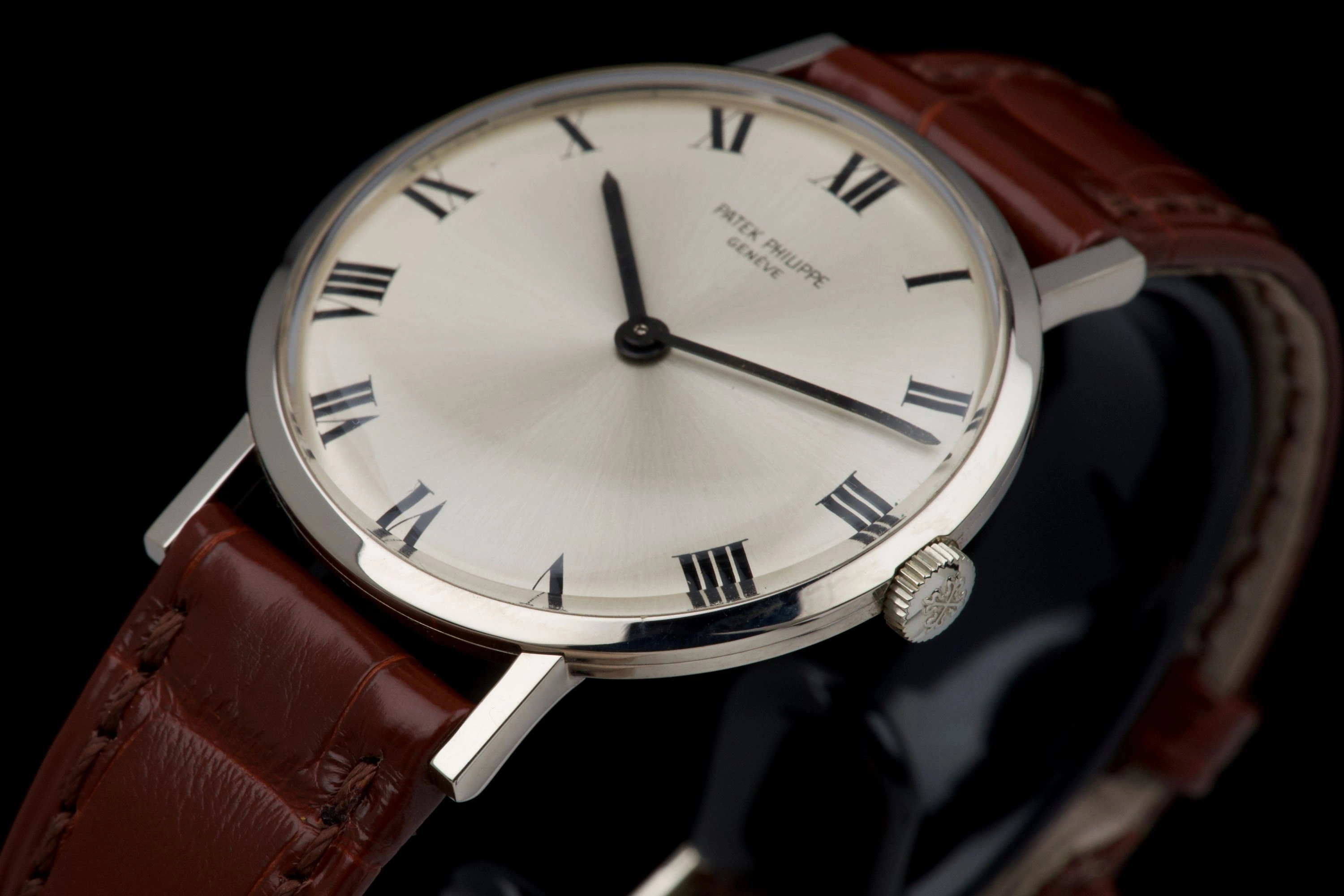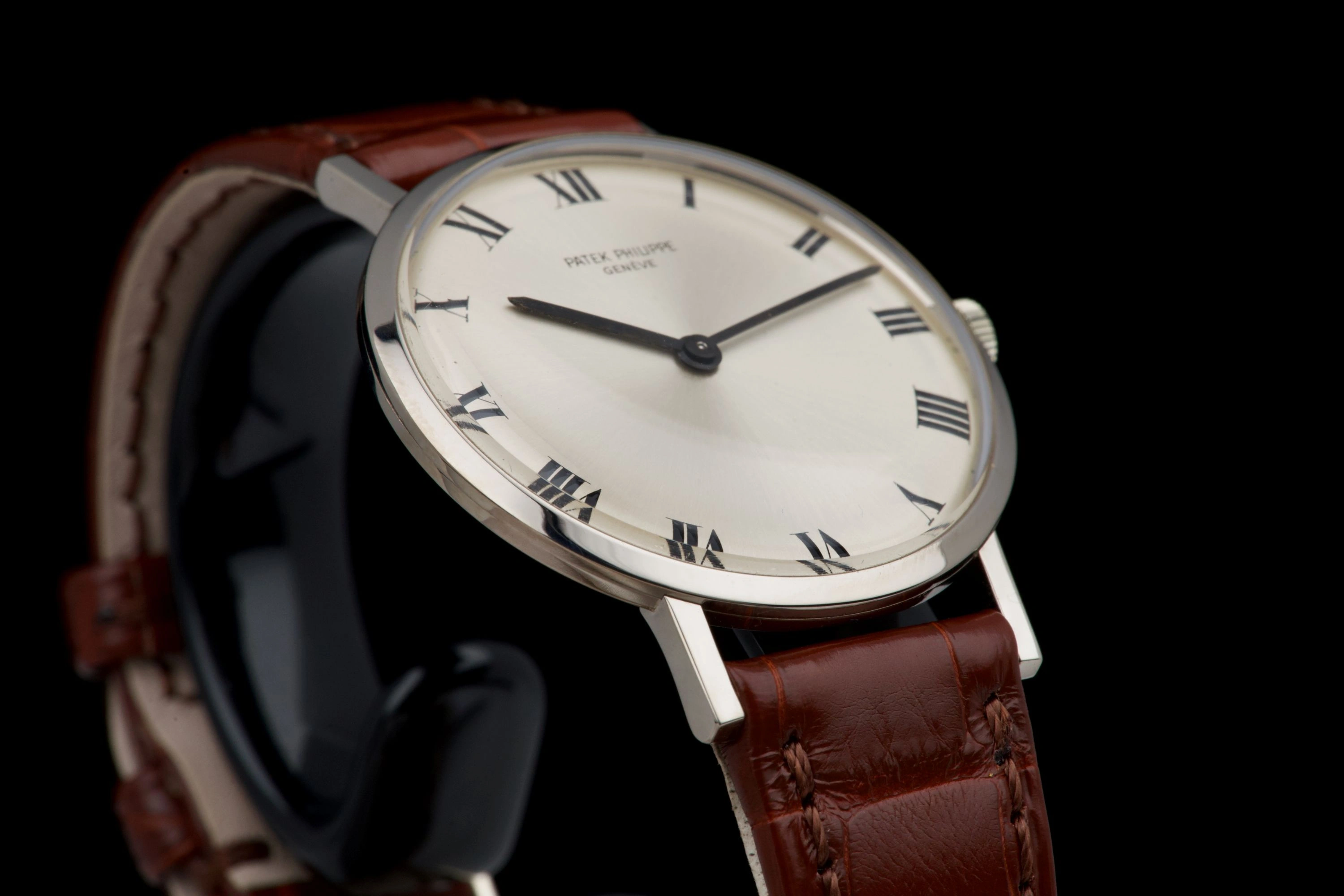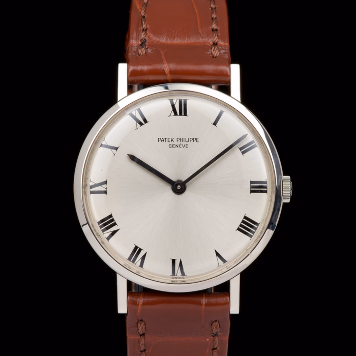 The hands are original and matching, completing the elegant vintage aesthetic. Fitted with its original white gold Patek Philippe tang buckle and a brand-new brown crocodile strap.