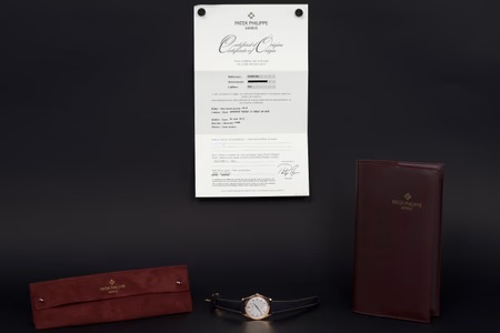 Fitted with a brand-new Patek Philippe black woven fabric strap, this elegant 37 mm Calatrava embodies timeless simplicity and perfect proportions.