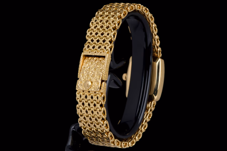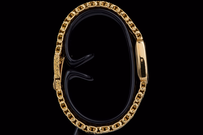 The yellow gold case appears only lightly polished, with deep and well-defined hallmarks
