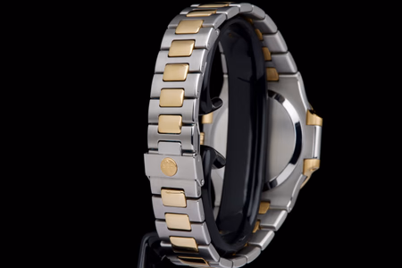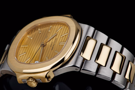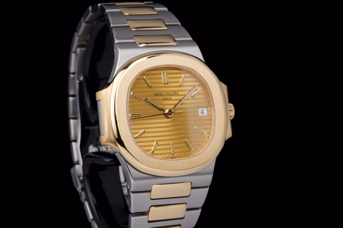 A beautiful and classic example of the two-tone Patek Philippe Nautilus reference 3800/1JA, featuring the sought-after gilt dial. This watch comes from its original owner and has just returned from a complete service and polish by Patek Philippe in 2025.