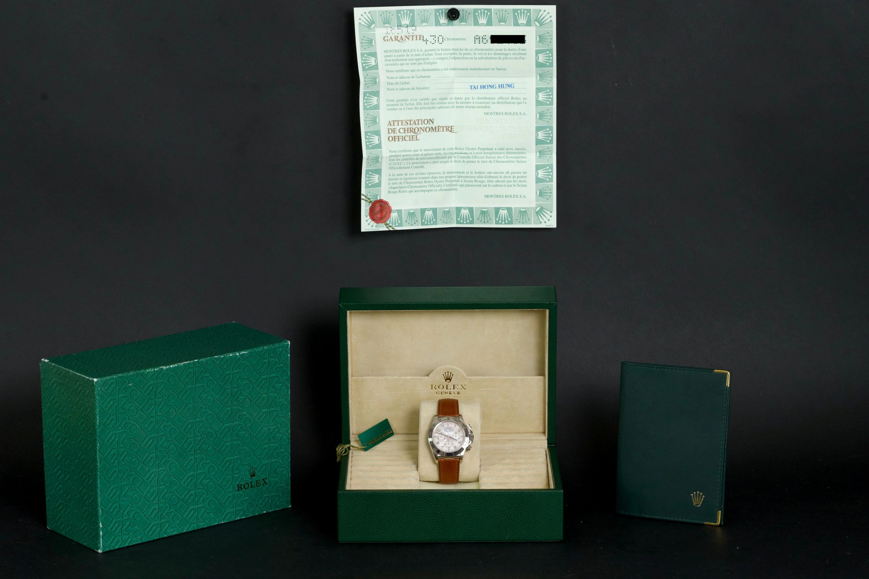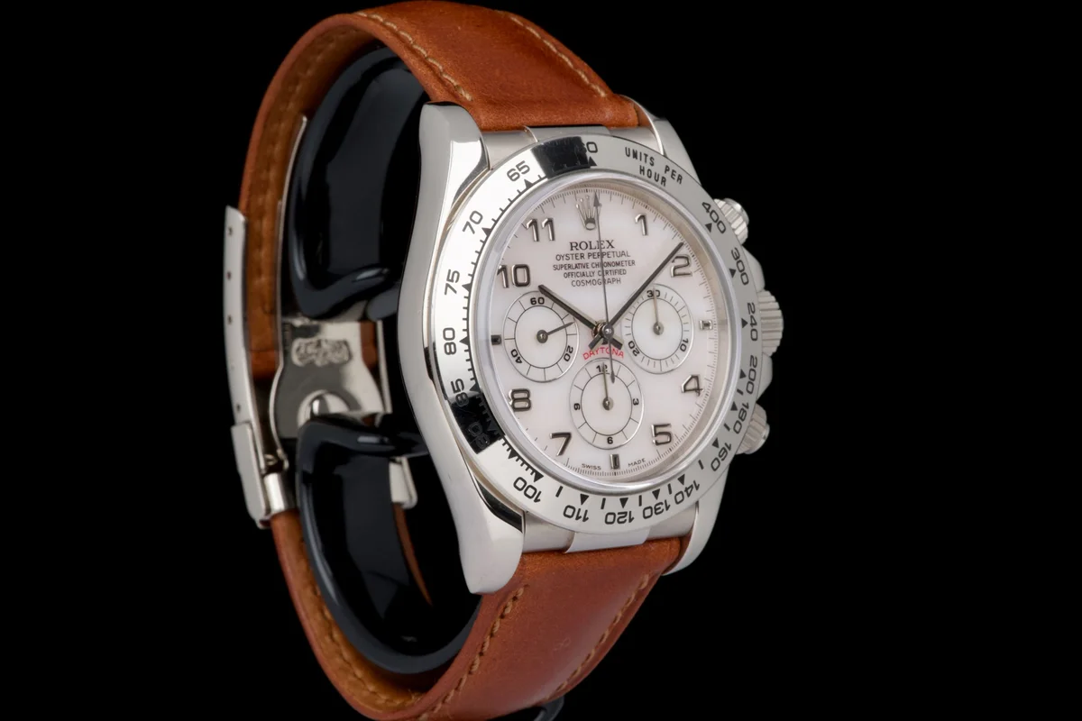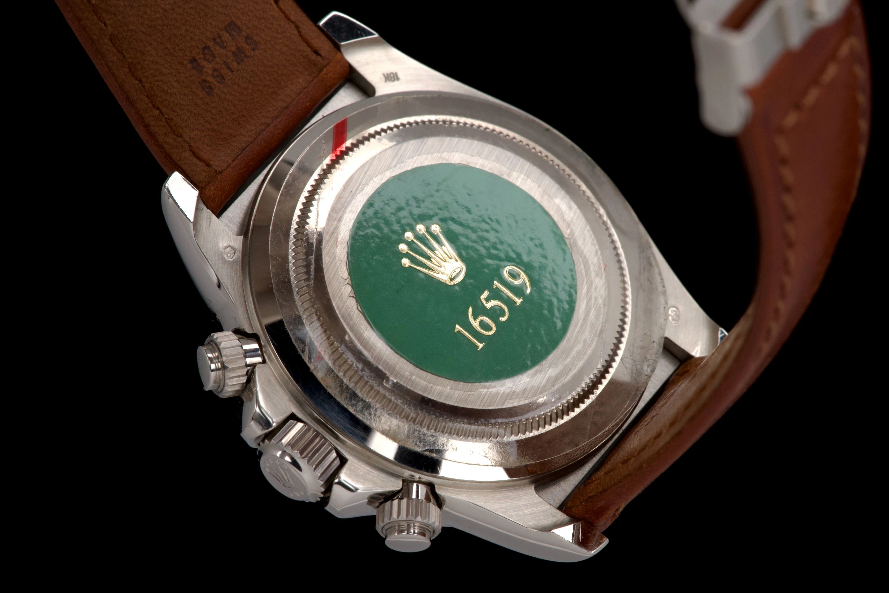 An absolutely stunning example of the Rolex Daytona 16519 in white gold, preserved in exceptional, near “New Old Stock” condition.