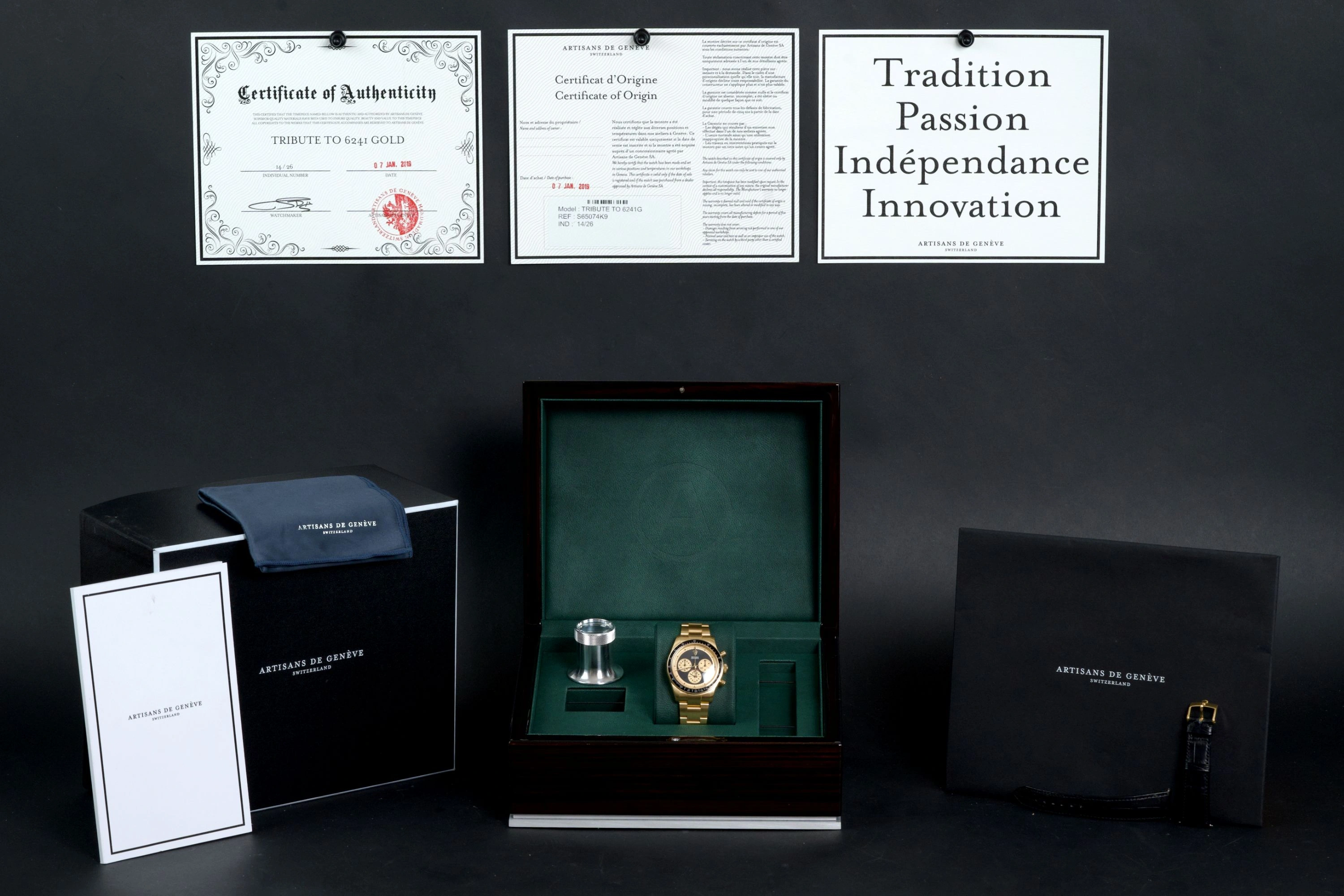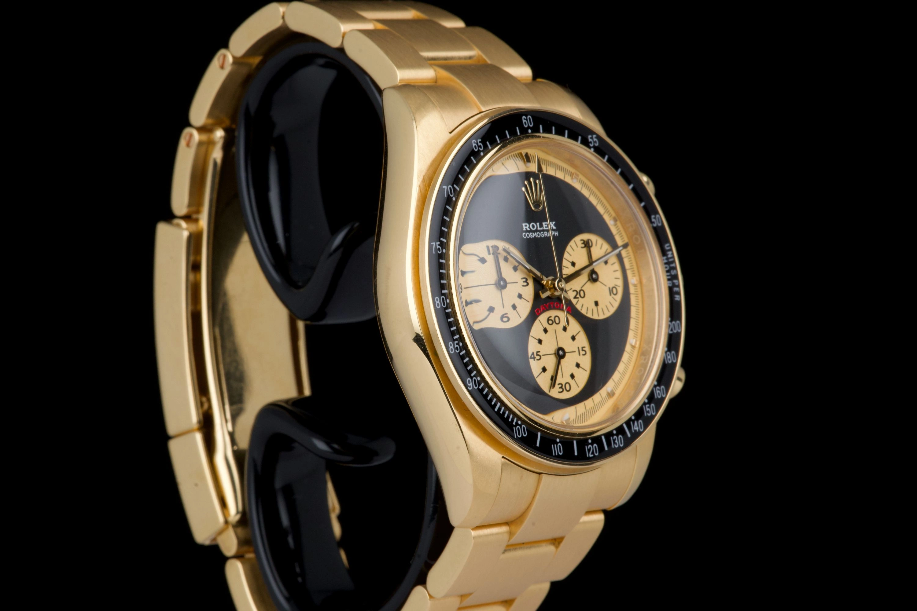 This exceptional piece began life as a Rolex Daytona 116528 in solid yellow gold and was later transformed by Artisans de Genève as part of their highly exclusive “John Player Special” Tribute project.