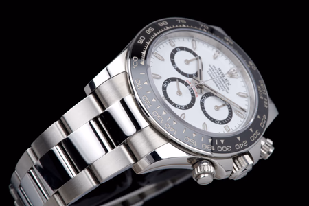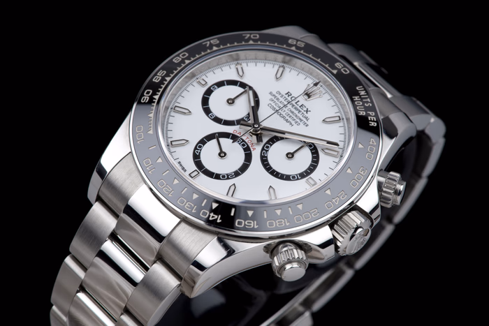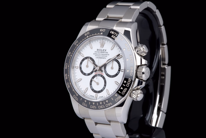 A beautiful example of the new-generation Rolex Cosmograph Daytona 126500LN, featuring the highly sought-after white “Panda” dial